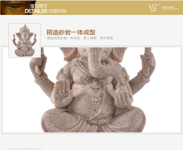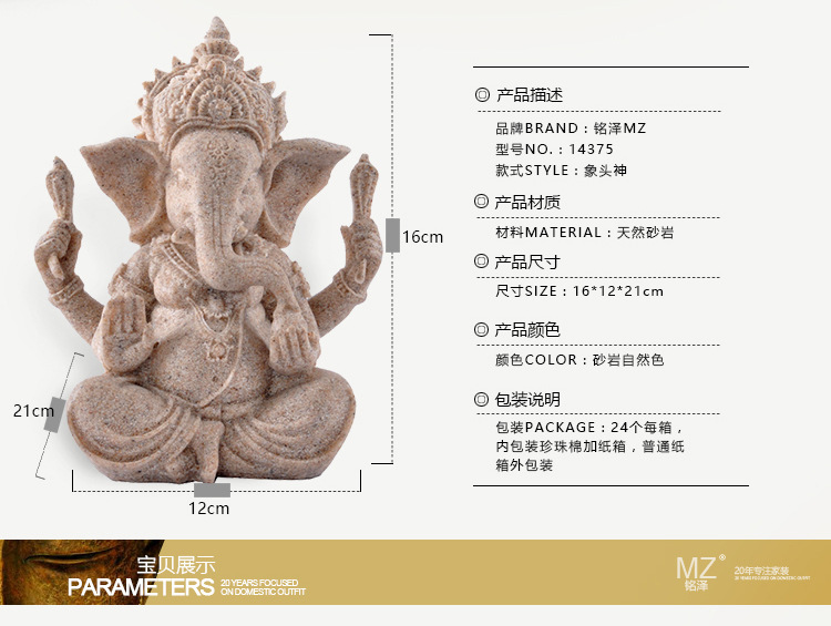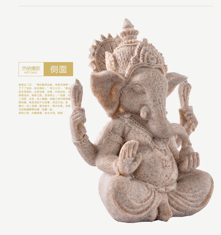 家居装饰创意礼品砂岩佛像工艺品批发14375印度象头神树脂摆件