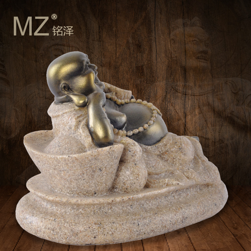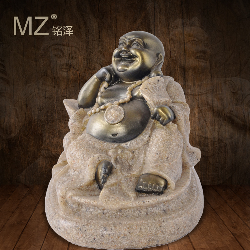 跨境爆款砂岩工艺品创意车载装饰品弥勒佛雕像树脂佛像摆件礼品