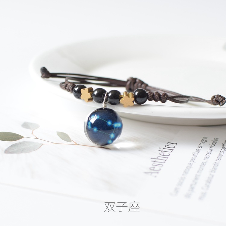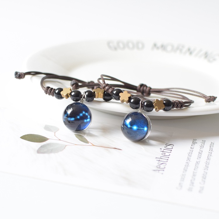 summer fashion all-match luminous twelve constellations bracelets women get couple girlfriends gift hand-knitted accessory bracelet