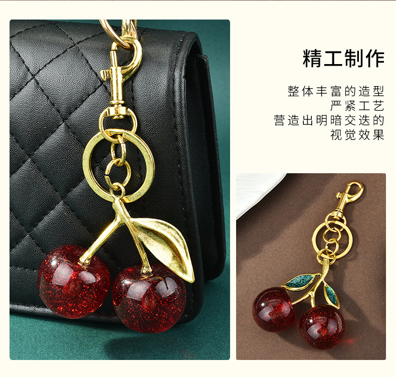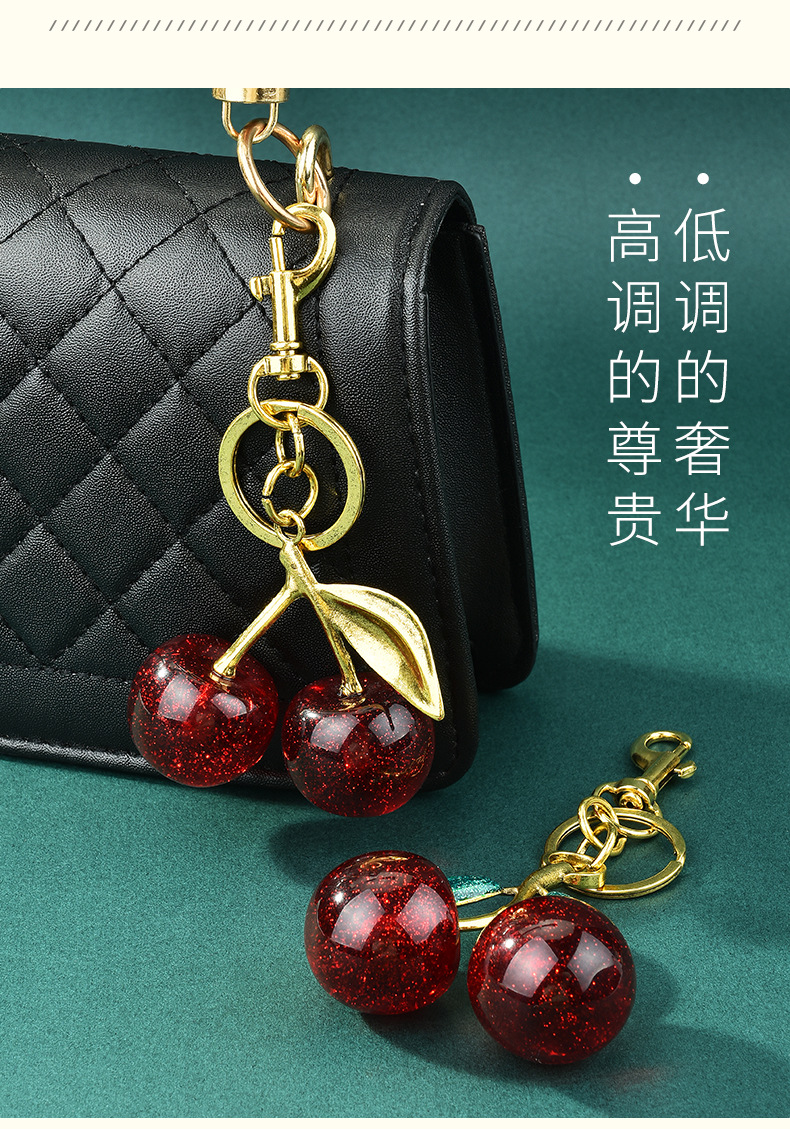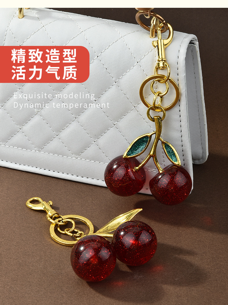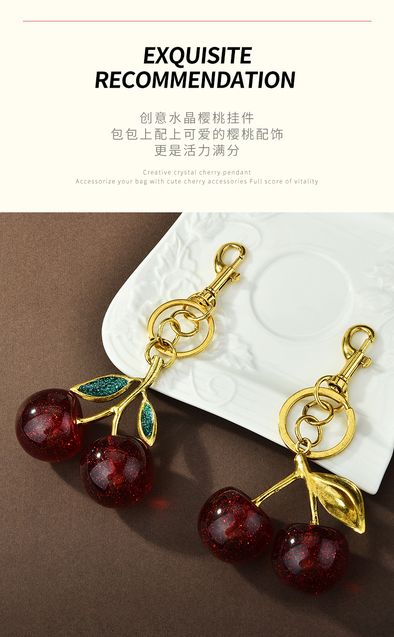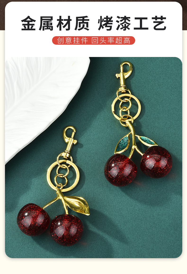 亚马逊车厘子金属挂件饰品包包挂件樱桃水晶树脂汽车时尚女钥匙扣