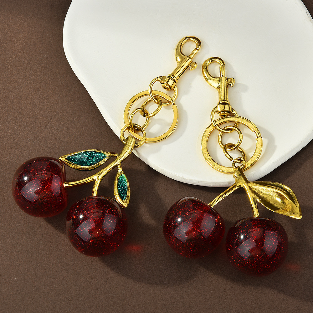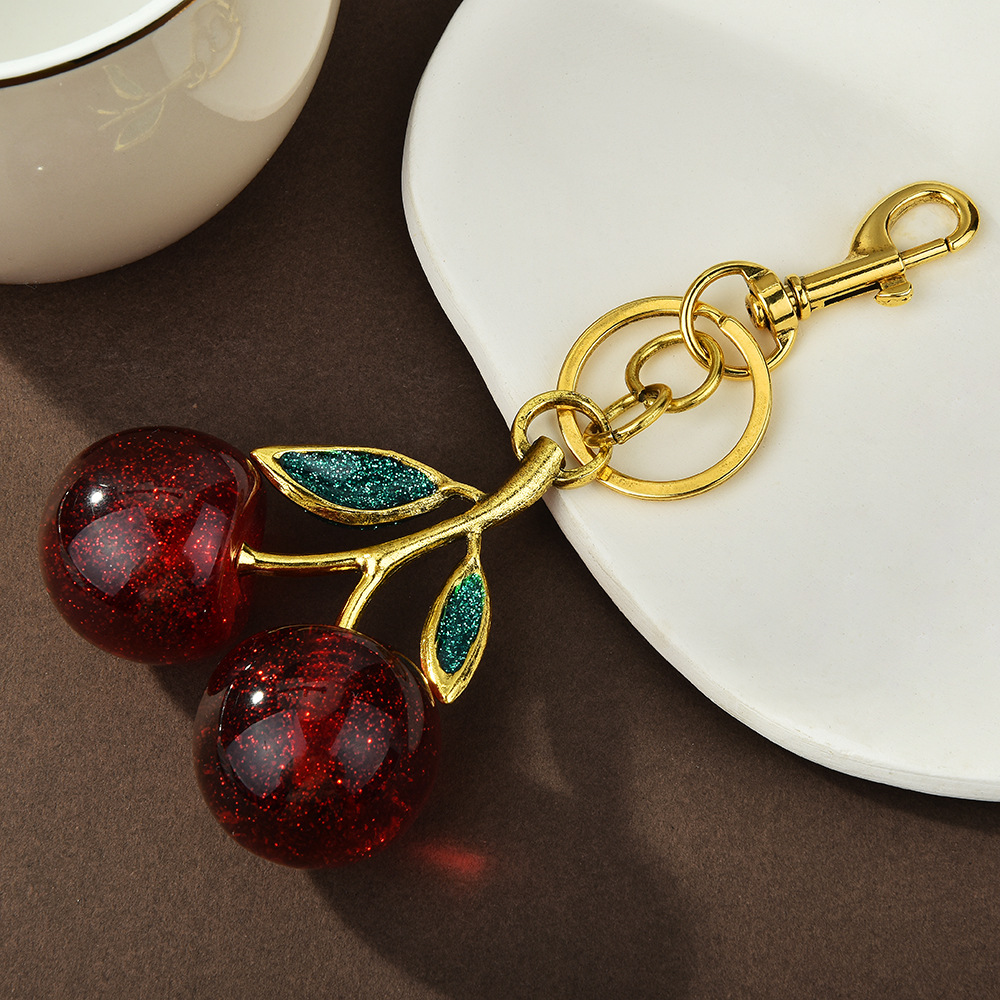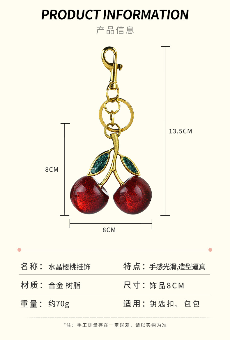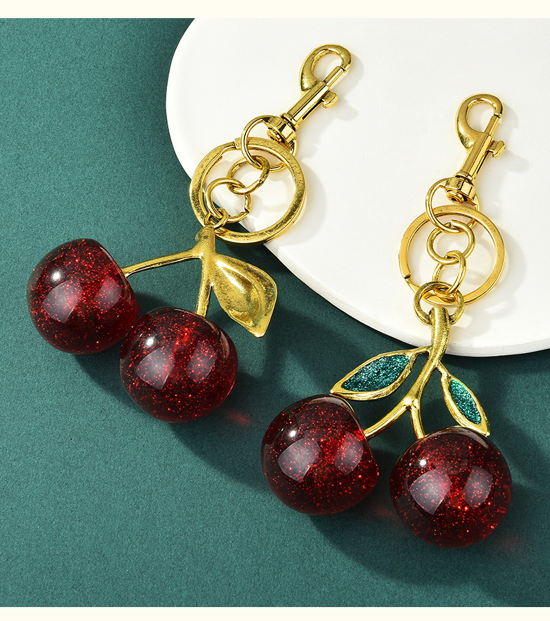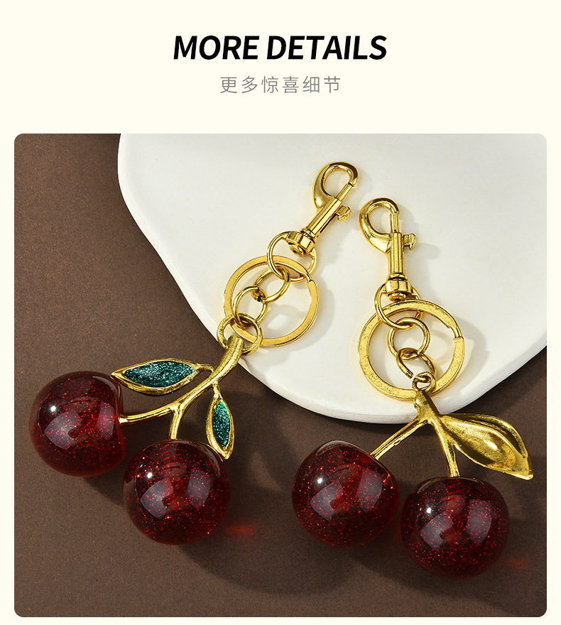 亚马逊车厘子金属挂件饰品包包挂件樱桃水晶树脂汽车时尚女钥匙扣