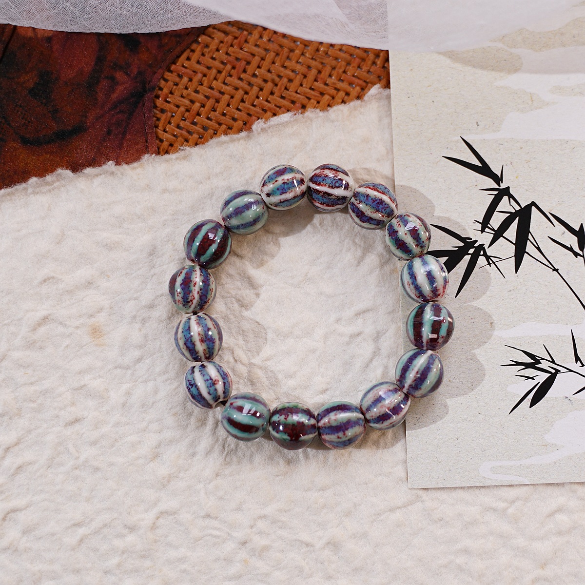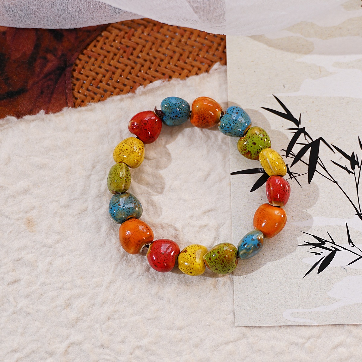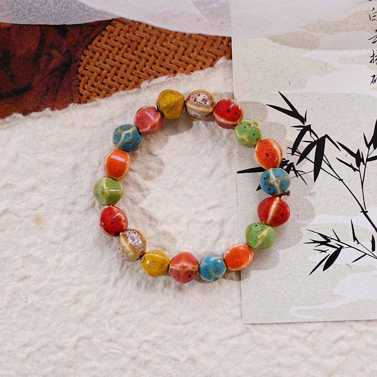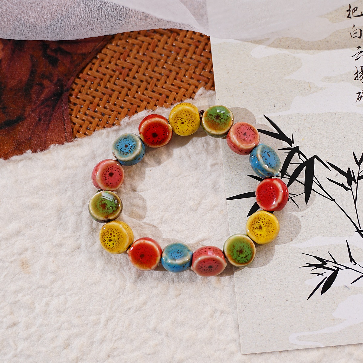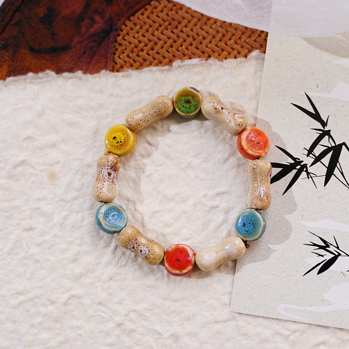 景德镇陶瓷饰品新款时尚花釉珠子手链多色休闲民族风学生手串批发
