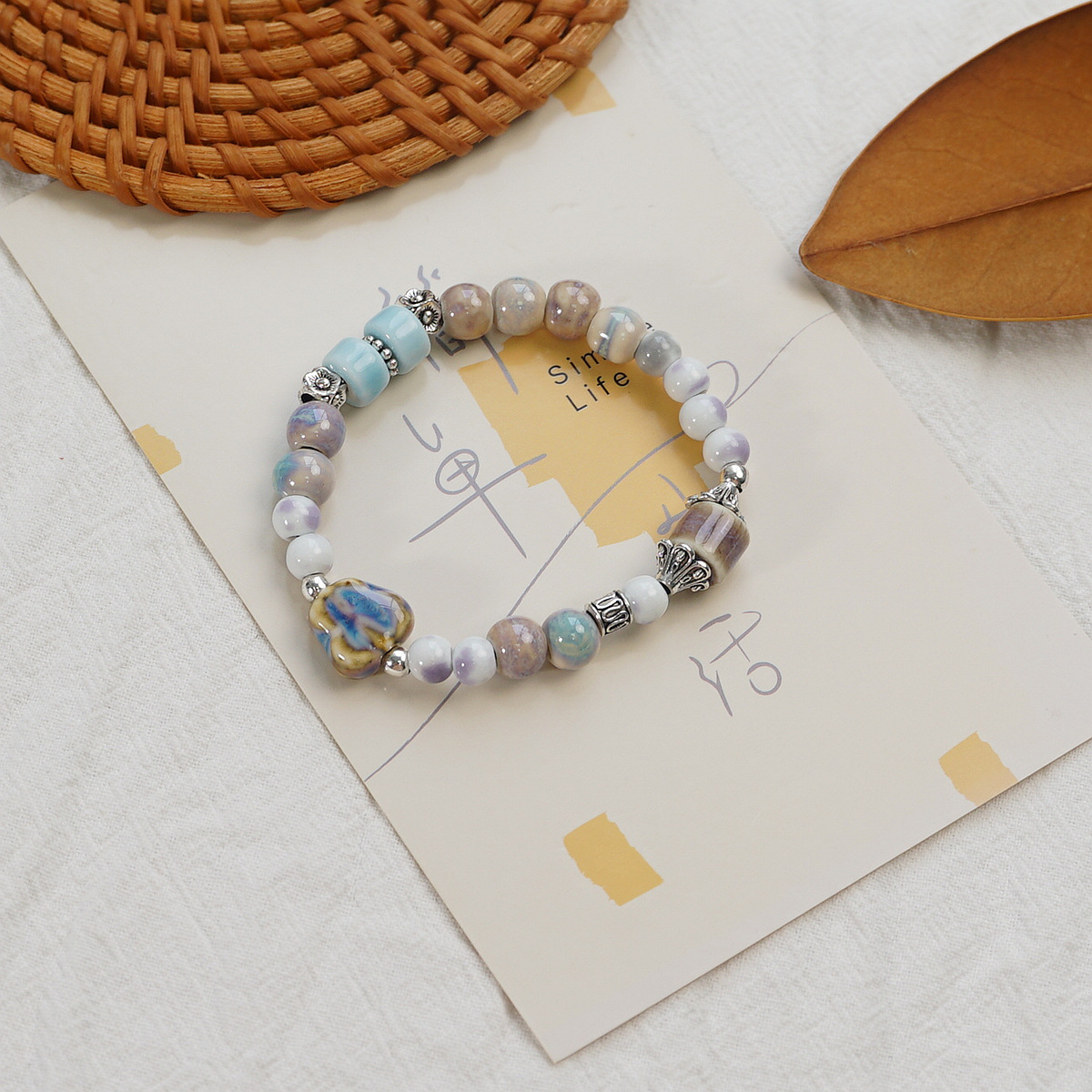 新中式单圈景德镇陶瓷手链一缕青瓷民族风文艺蝴蝶时尚手串饰品