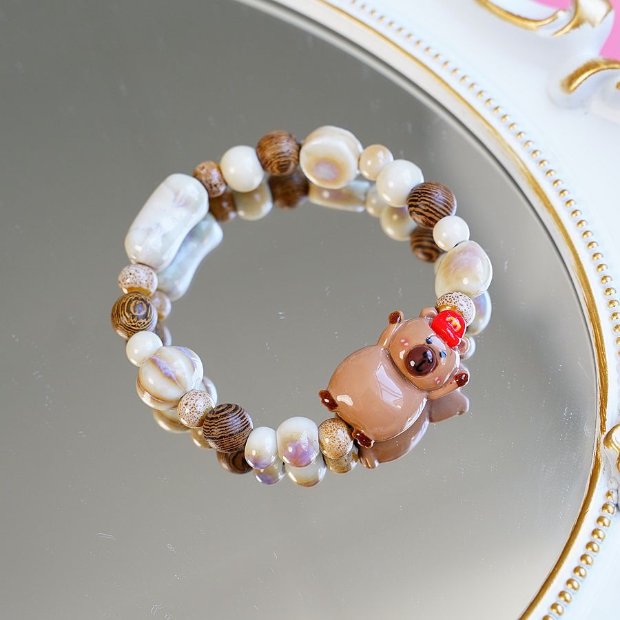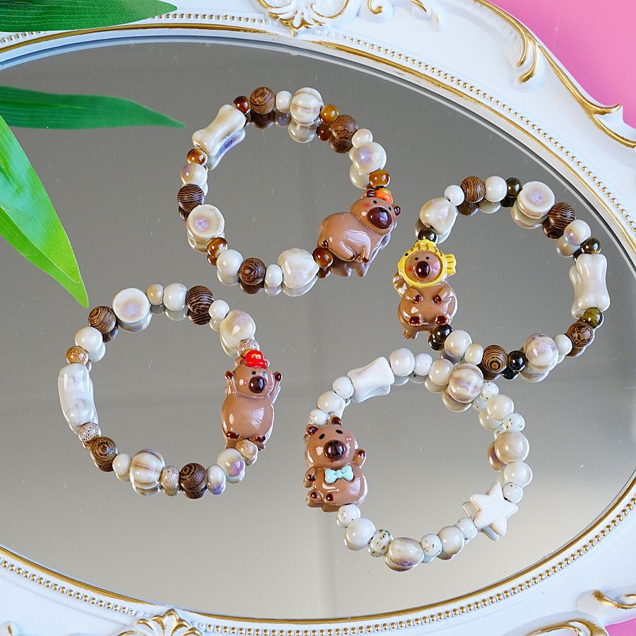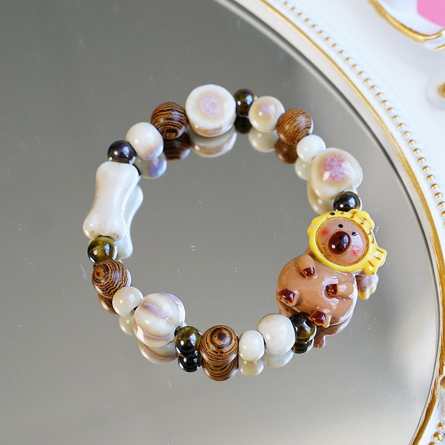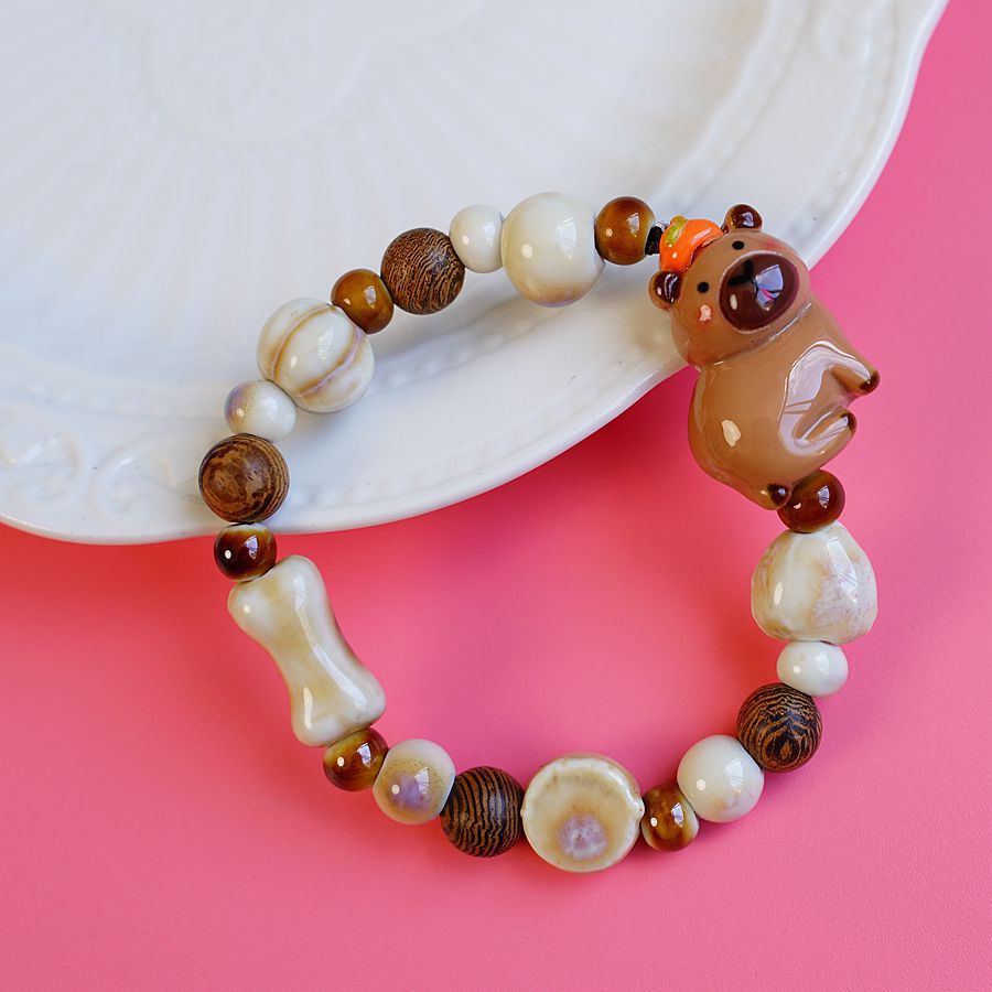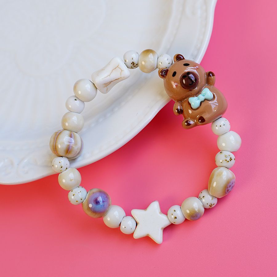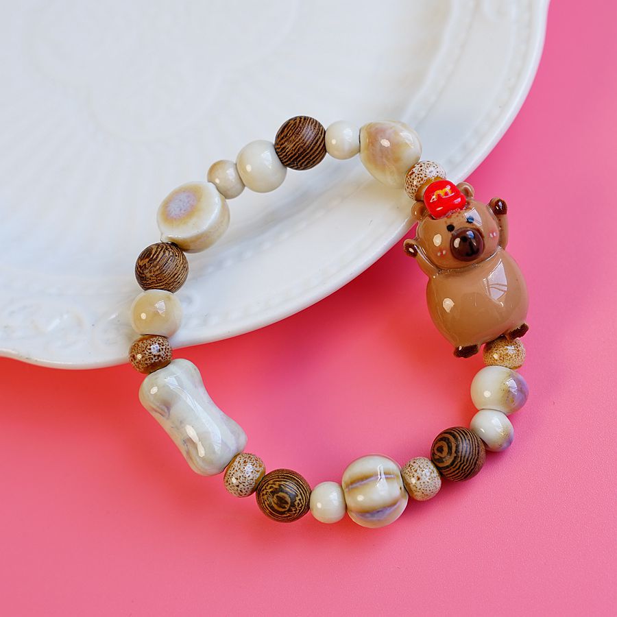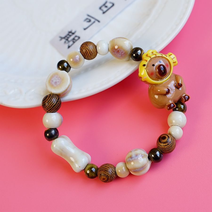 景德镇陶瓷手链可爱萌树脂小熊卡皮巴拉学生小动物儿童手串女批发