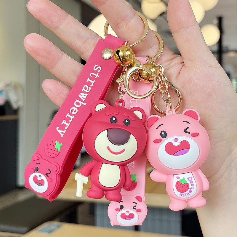 网红情侣卡通公仔草莓熊钥匙扣可爱饰品精致钥匙挂件汽车包包挂饰
