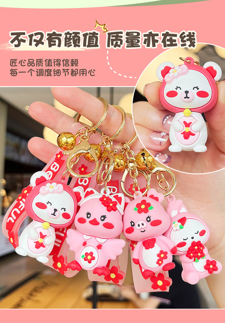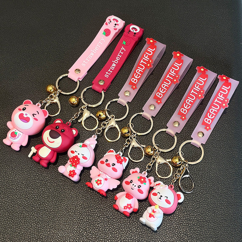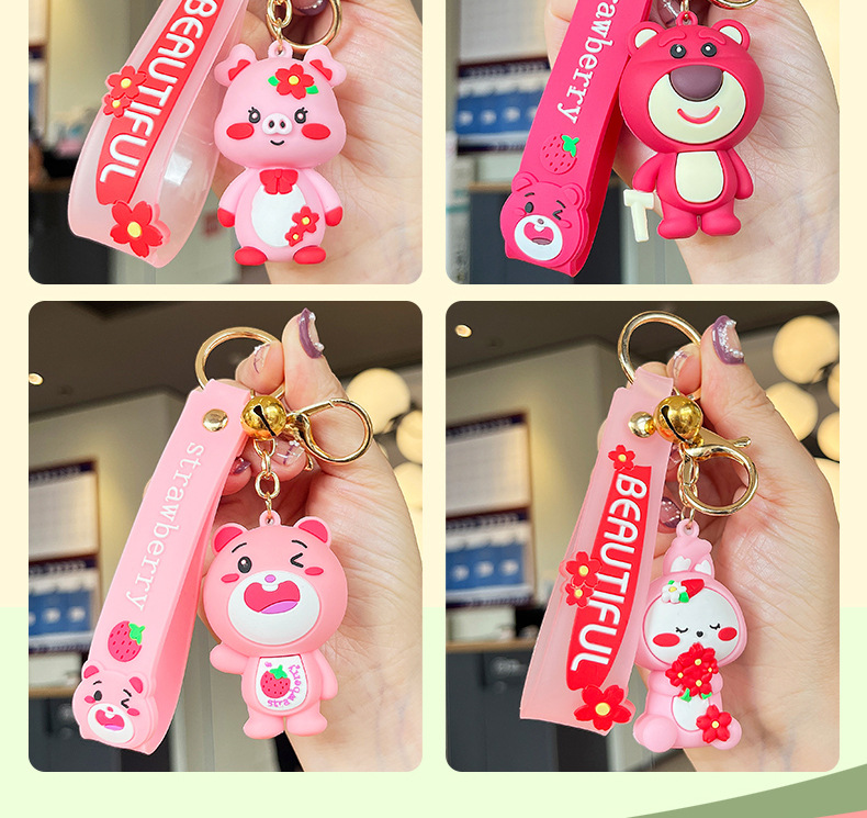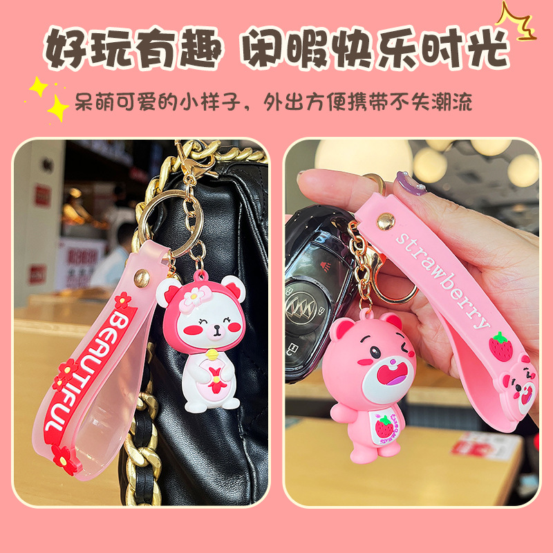 草莓熊创意卡通钥匙链公仔小饰品精致钥匙挂件汽车包包挂饰钥匙扣