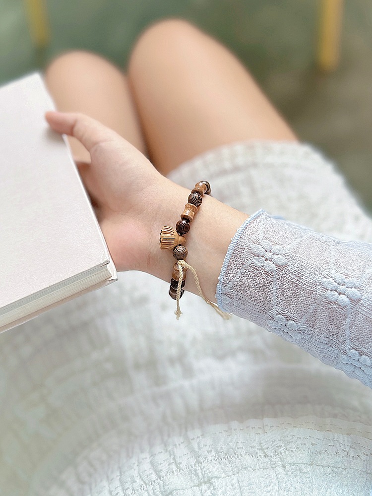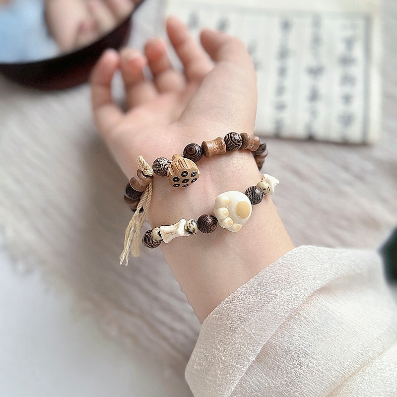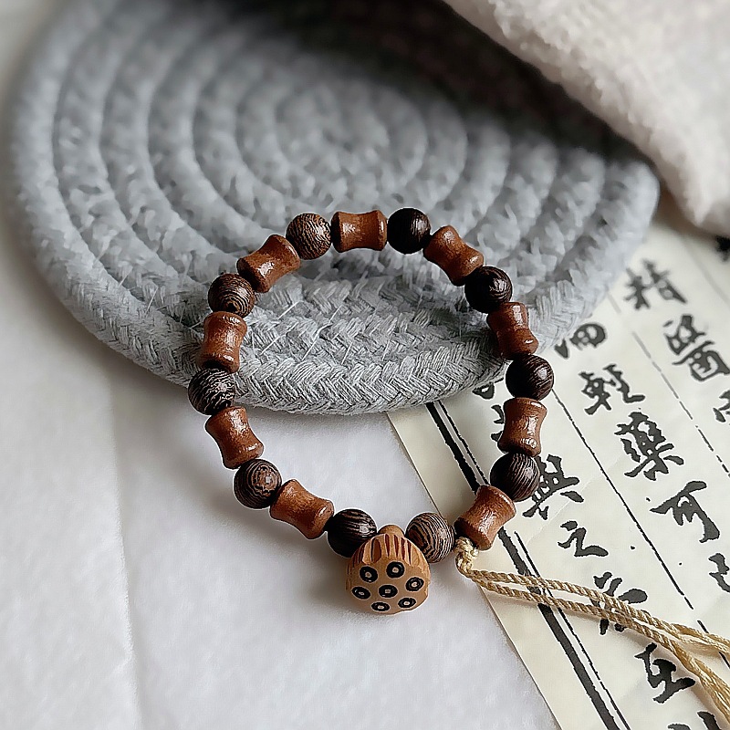 秋冬新款檀木手链高级感莲蓬新中式百搭饰品国风古风串珠手串配饰