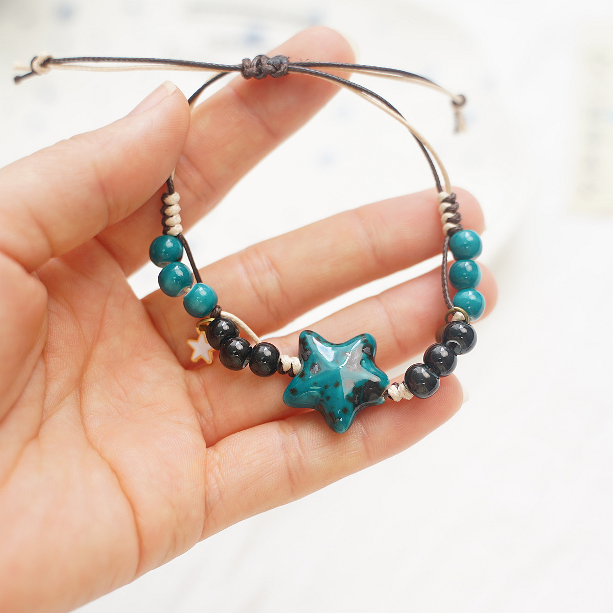 景德镇新款时尚清新海洋系海星陶瓷编织手串夏天闺蜜手链手饰批发