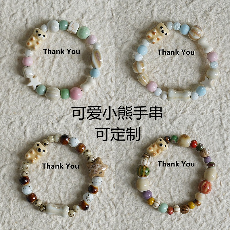 可爱小熊小红书热销款景德镇陶瓷手链百搭可爱设计感卡通甜美手串