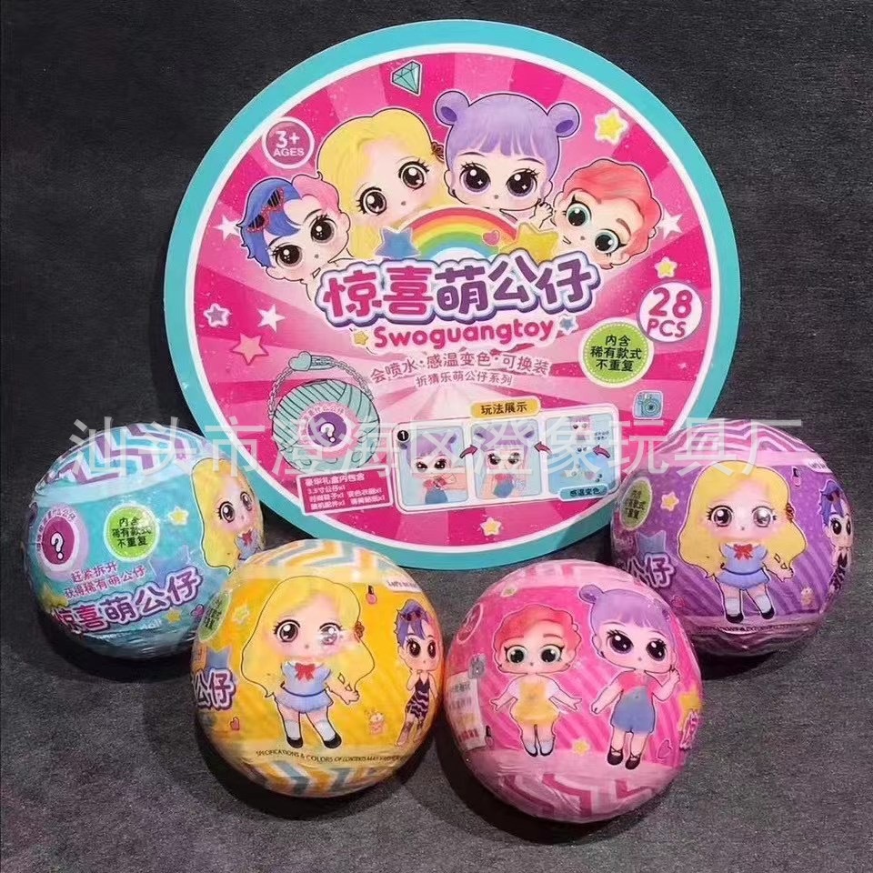 儿童盲盒惊萌公仔蛋喜拆拆乐感温变色喷水娃娃球玩具女孩桶装9.5c