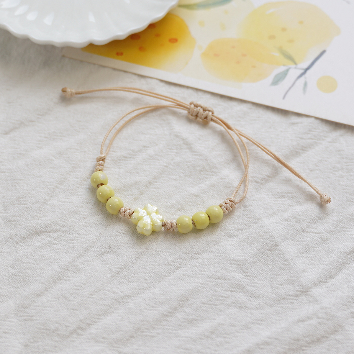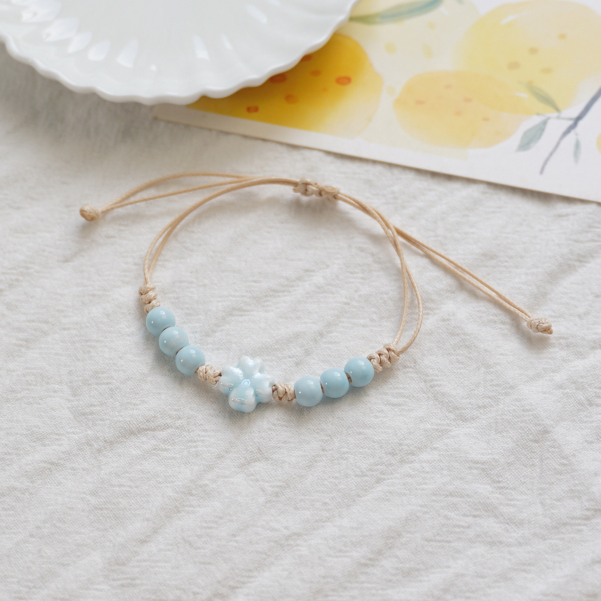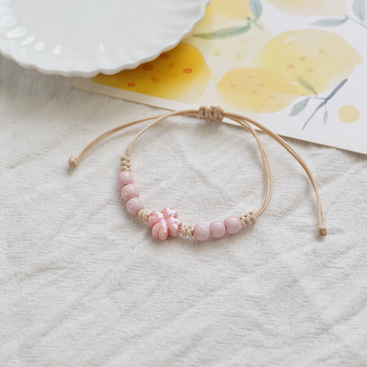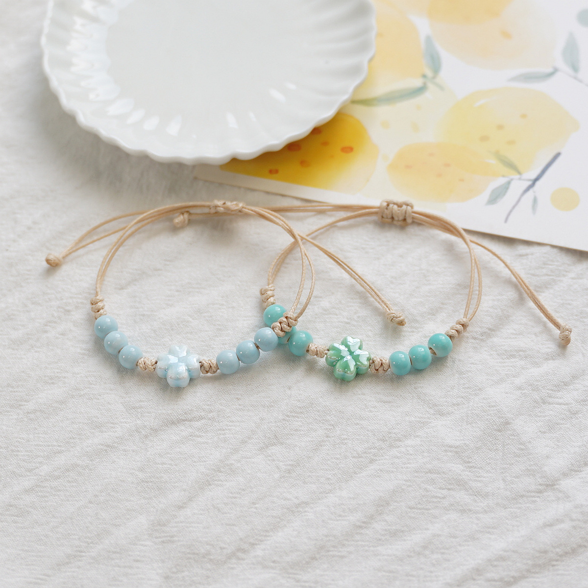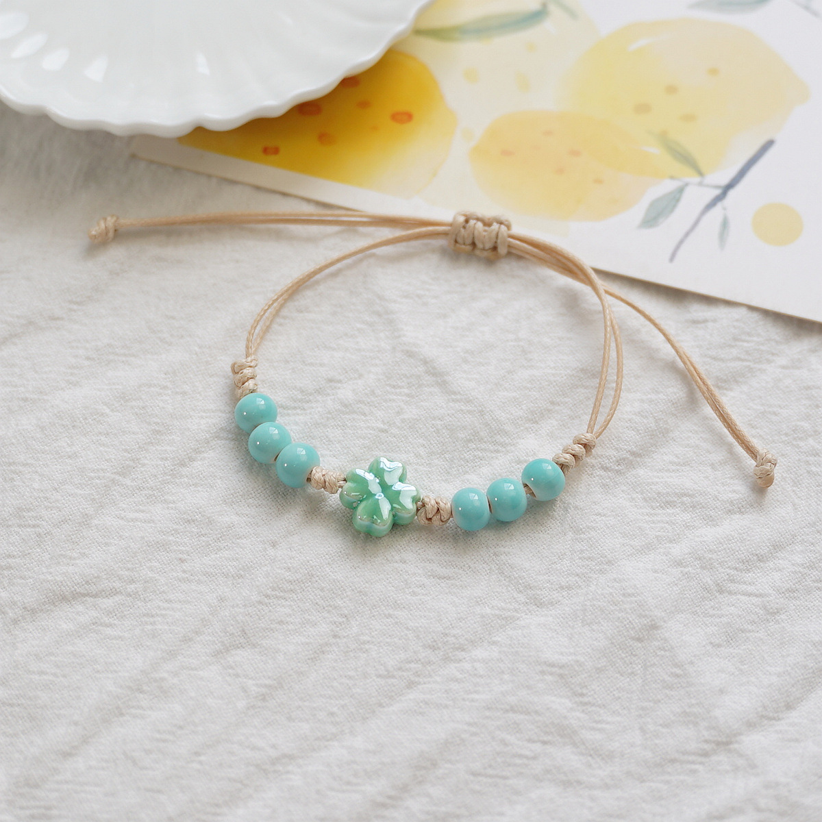 新中式四叶草编织手链女原创设计小众复古手饰民族风陶瓷手绳饰品