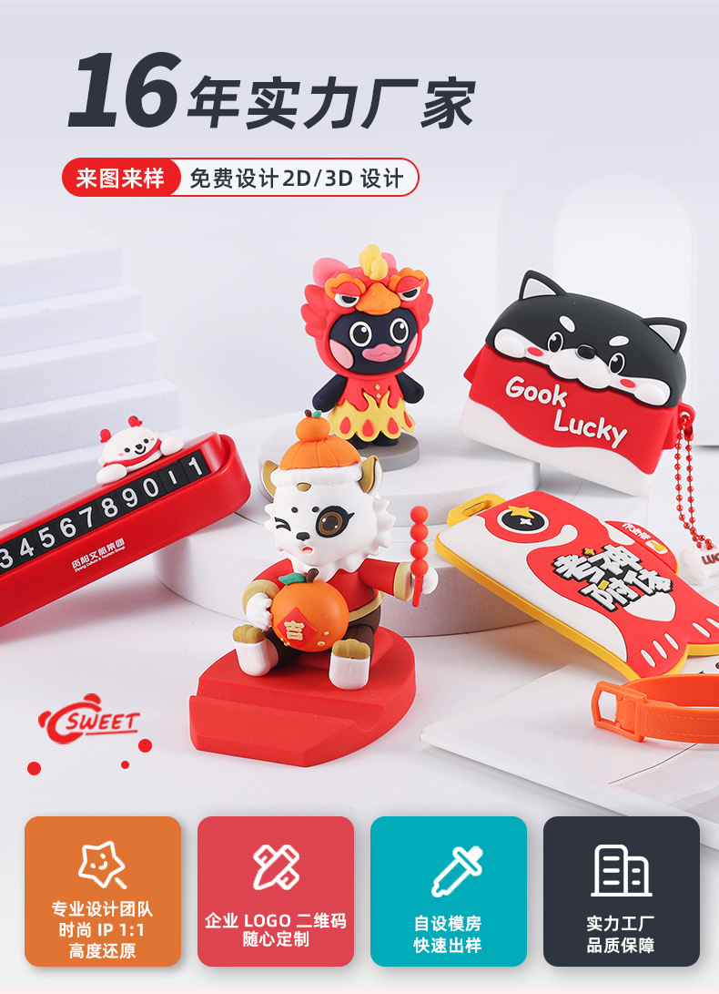 商务礼品pvc软胶盲盒公仔定制动物硅胶IP公仔钥匙扣卡通停车牌
