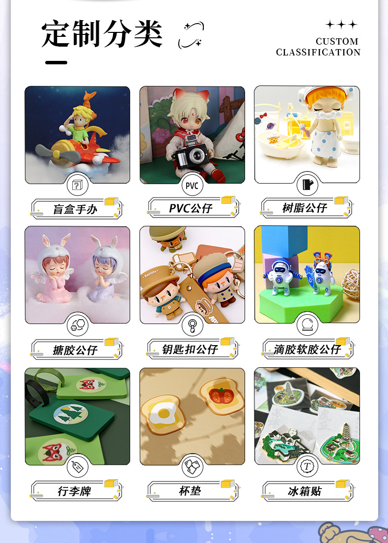 PVC盲盒公仔定制树脂工艺品挂件原创IP形象搪胶网红手办摆件定做