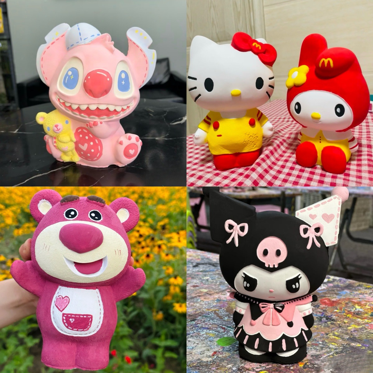 网红爆款3D立体10cm搪胶娃娃diy涂色三丽鸥库洛米史迪仔 跨境货源