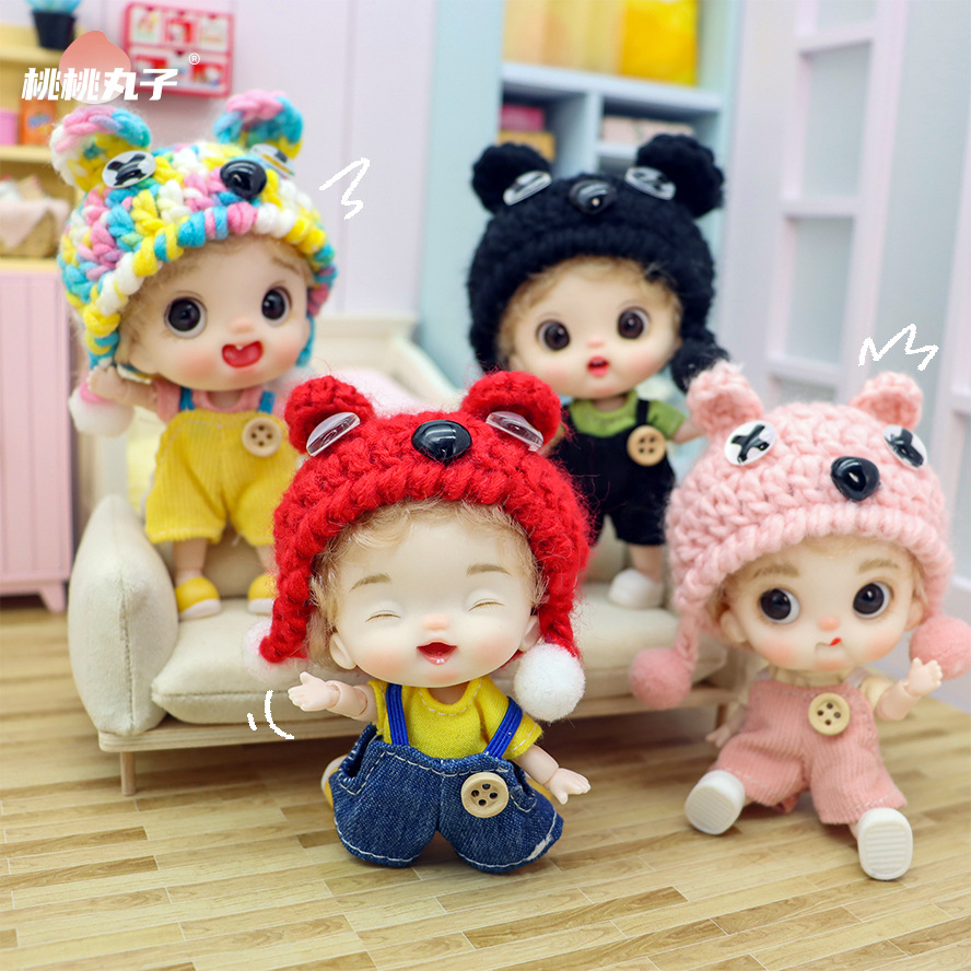 新款秋游野营服饰OB11/BJD娃娃仿真手工钩织娃帽萌物精致儿童玩具