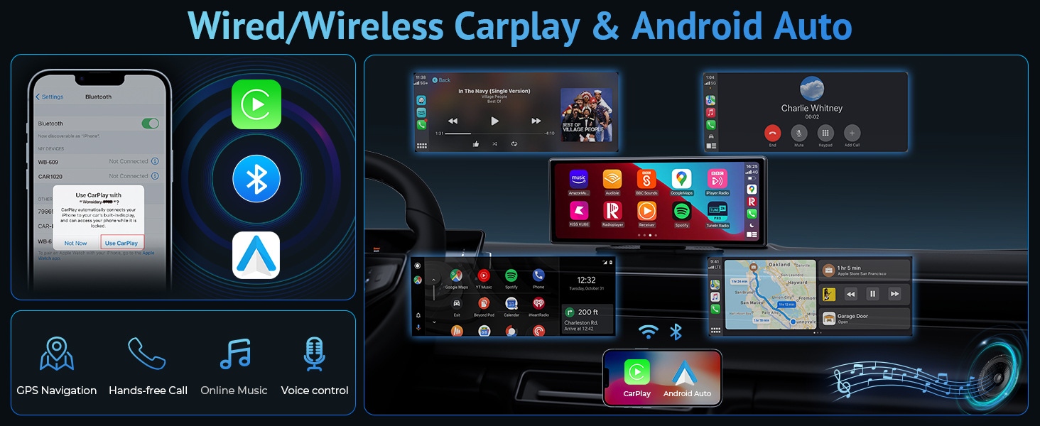 10.26寸便携式车载MP5蓝牙手机互联显示器无线carplay安卓导航仪