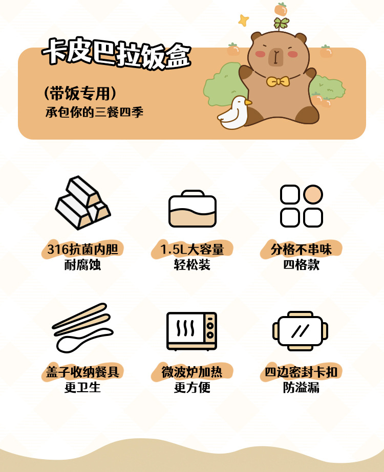 上班族专用微波炉保温饭盒餐盒2024新款便当盒卡皮巴拉小学生气息