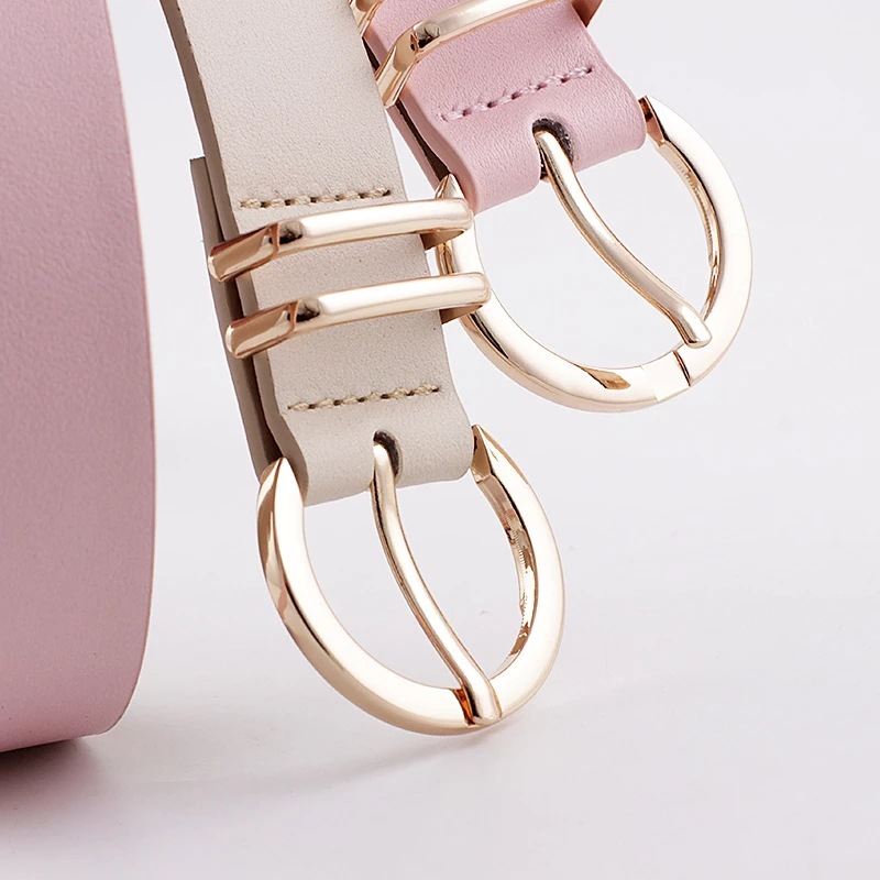 欧美时尚牛仔裤针扣双戒皮带女士休闲圆形方形腰带学生厂家直销
