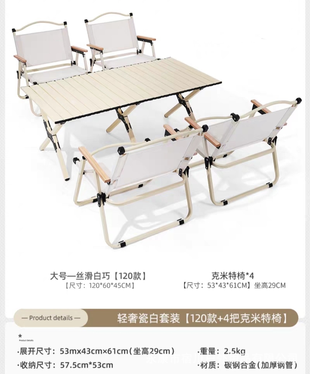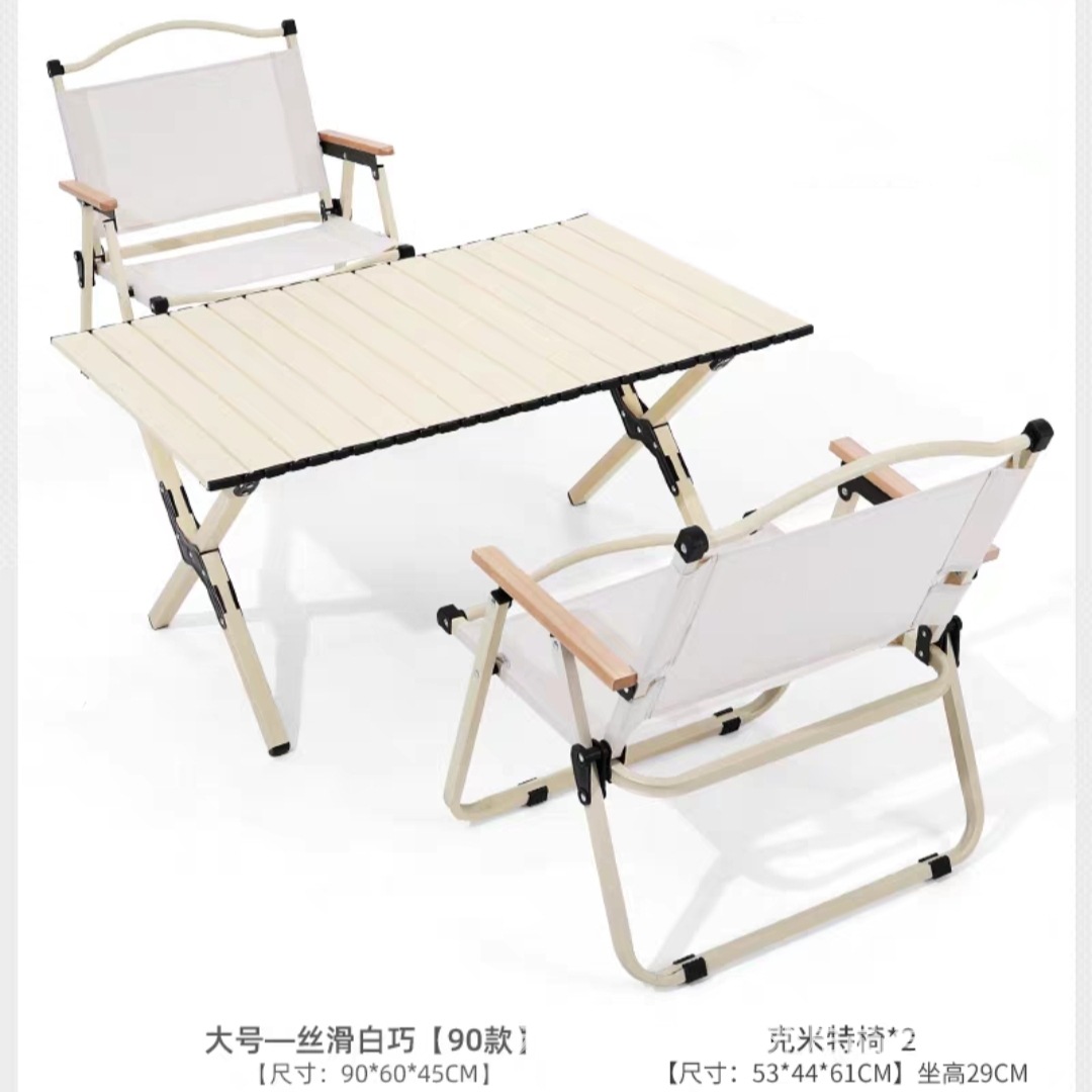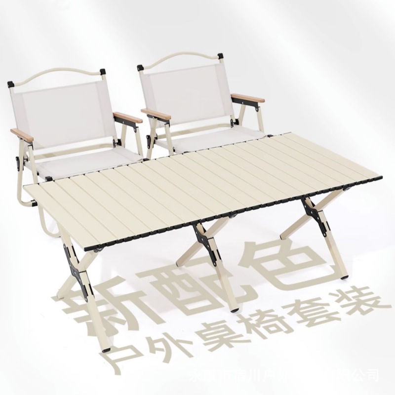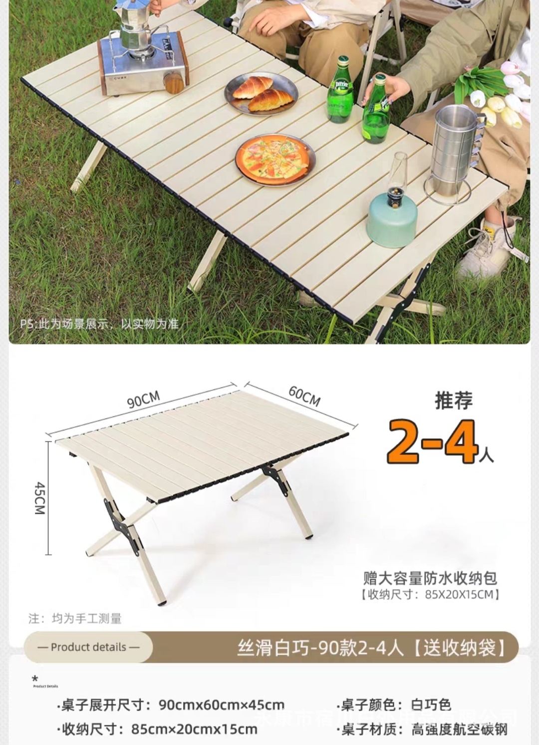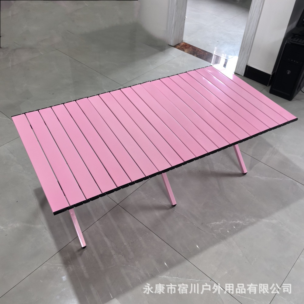 户外可折叠瓷白色碳钢蛋卷桌椅粉色露营桌便携式野餐装备仿真木纹