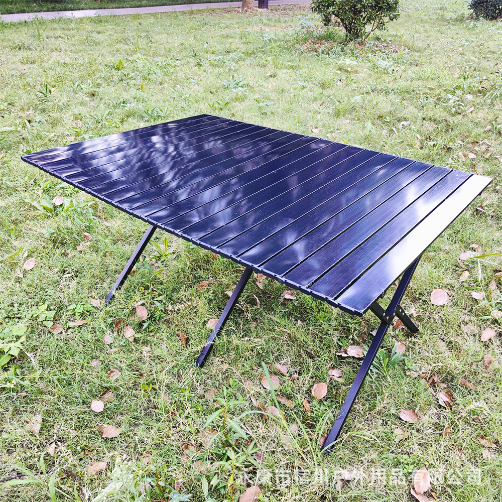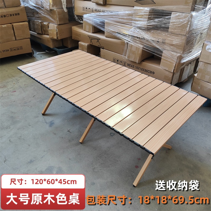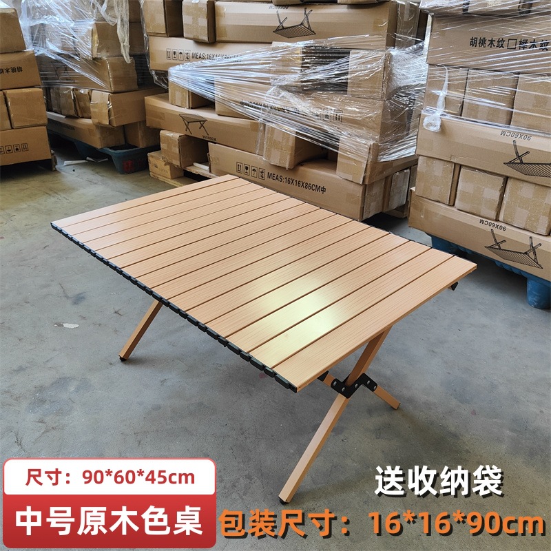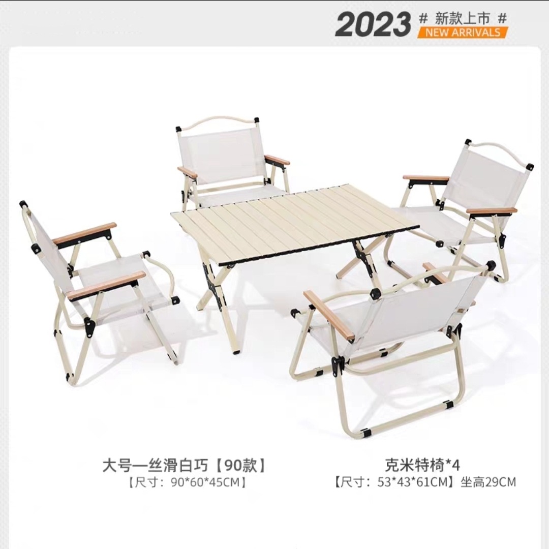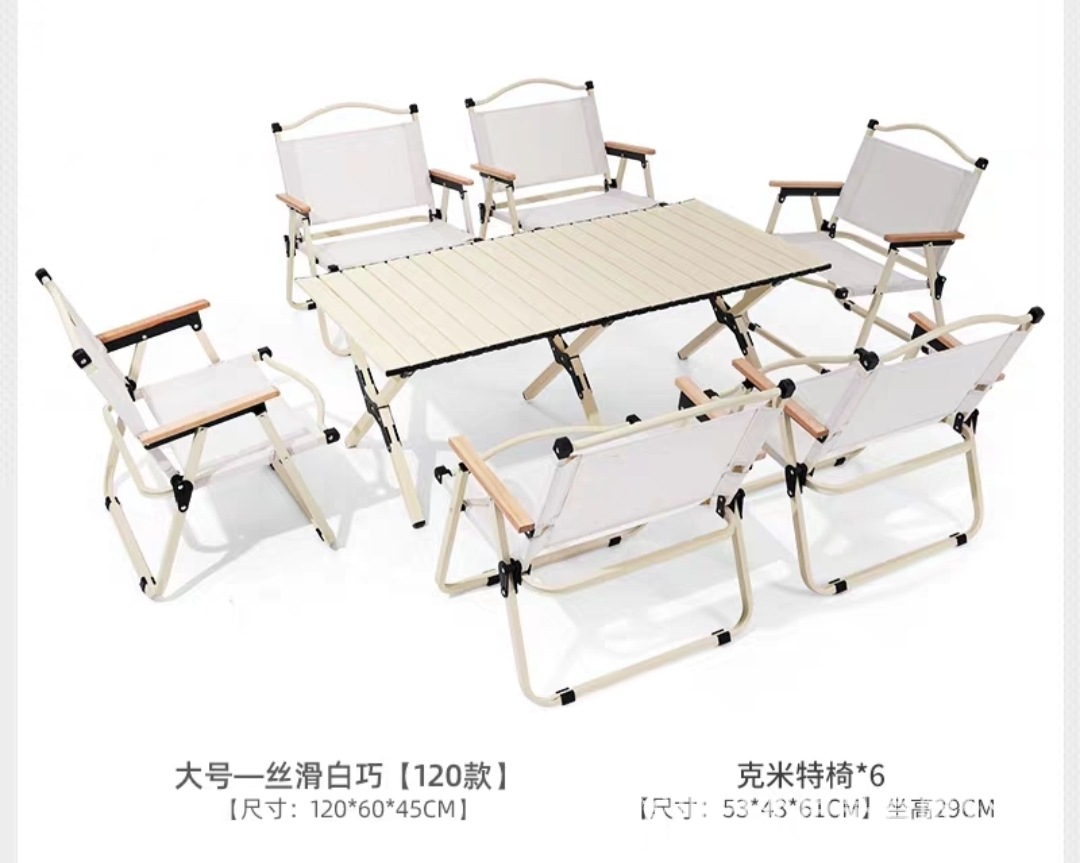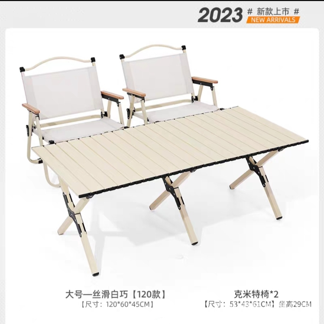 户外可折叠瓷白色碳钢蛋卷桌椅粉色露营桌便携式野餐装备仿真木纹
