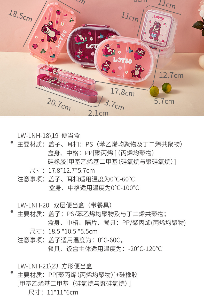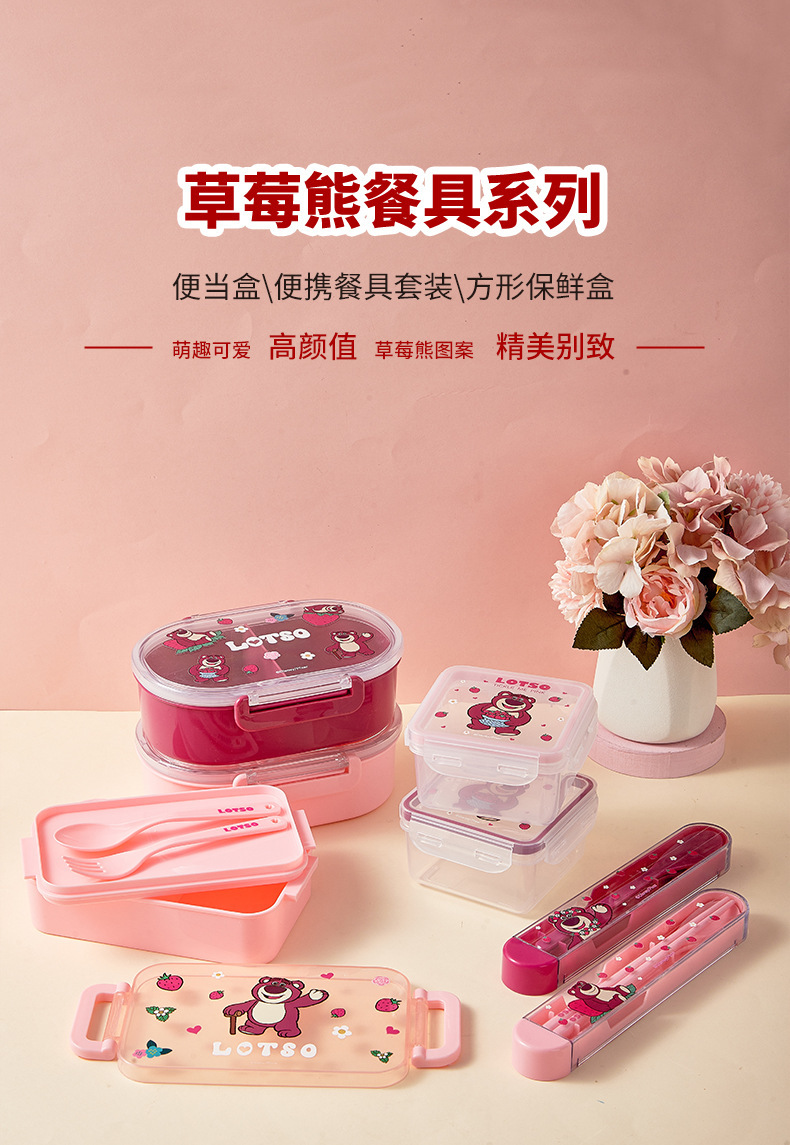 便携餐具套装保温饭盒可爱卡通学生上班族方形保鲜便当盒