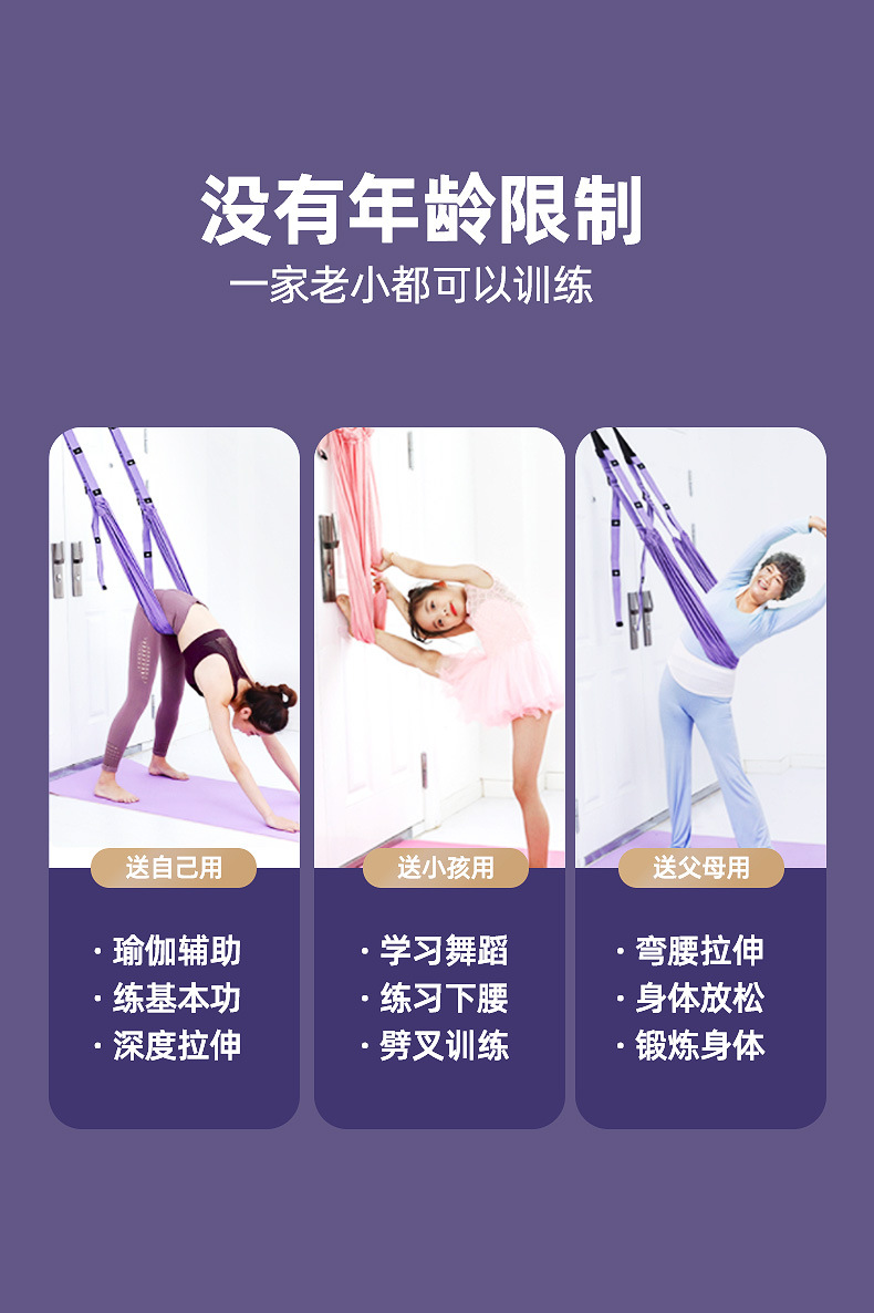 可调节空中瑜伽绳吊绳一字马训练压腿拉筋倒立劈叉下腰带拉伸训练