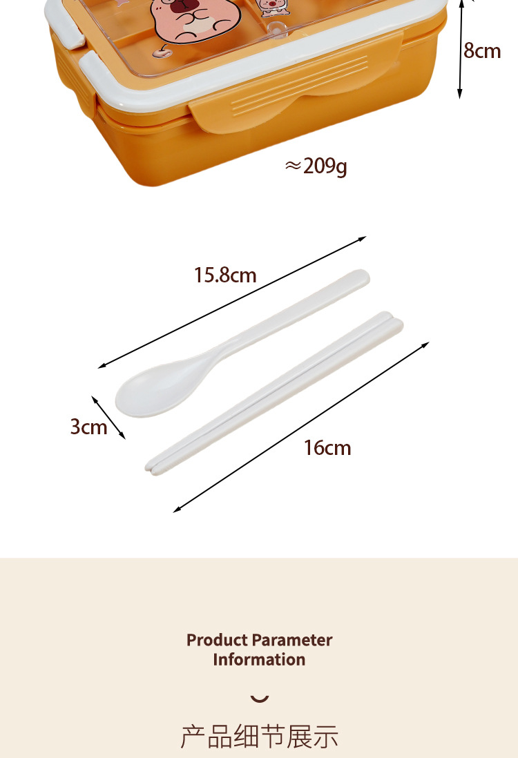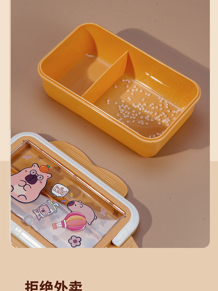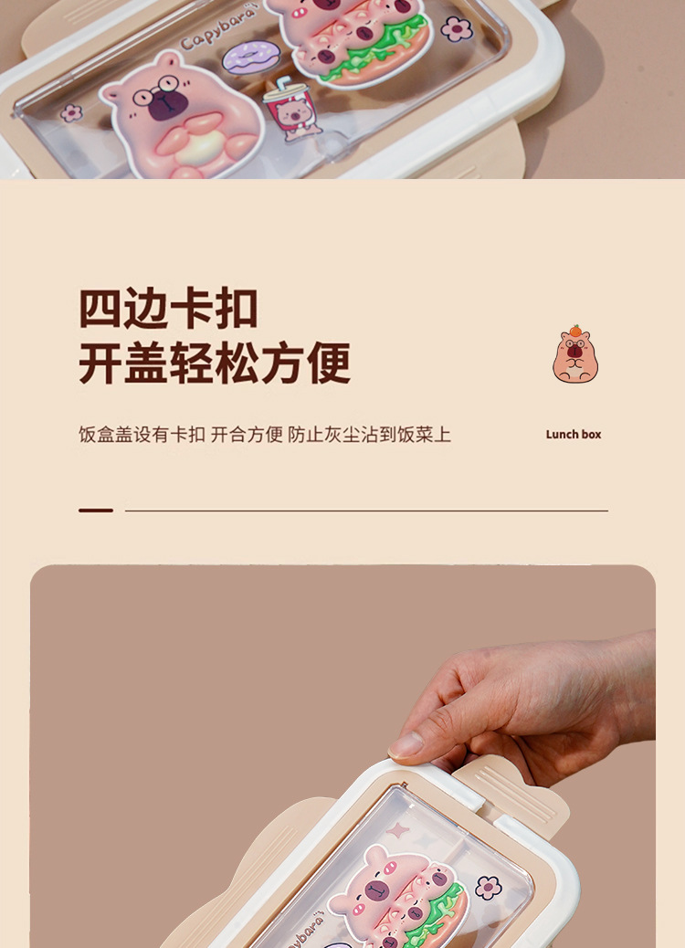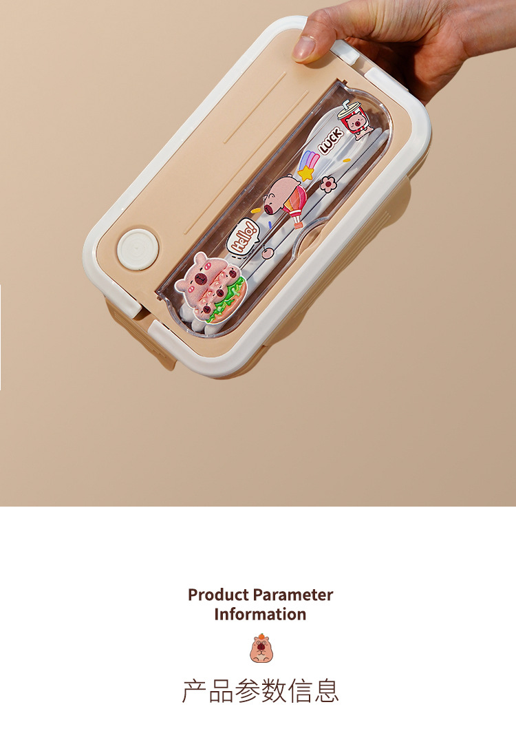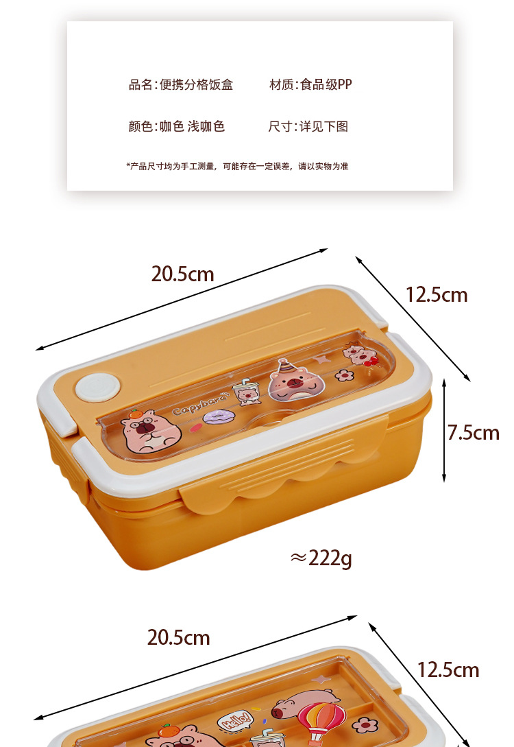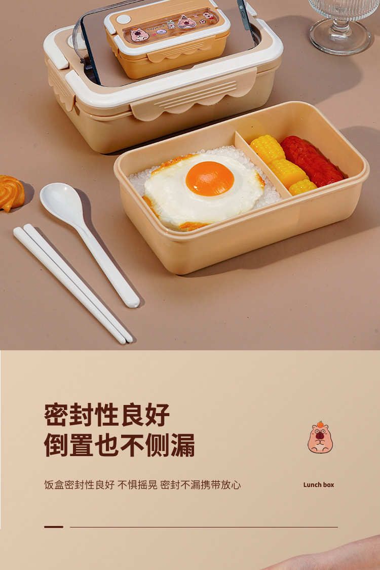 学生饭盒透明盖带勺筷餐具便当盒上班族可微波午餐盒卡通分隔饭盒