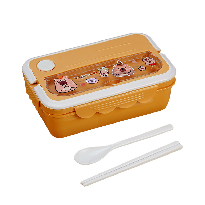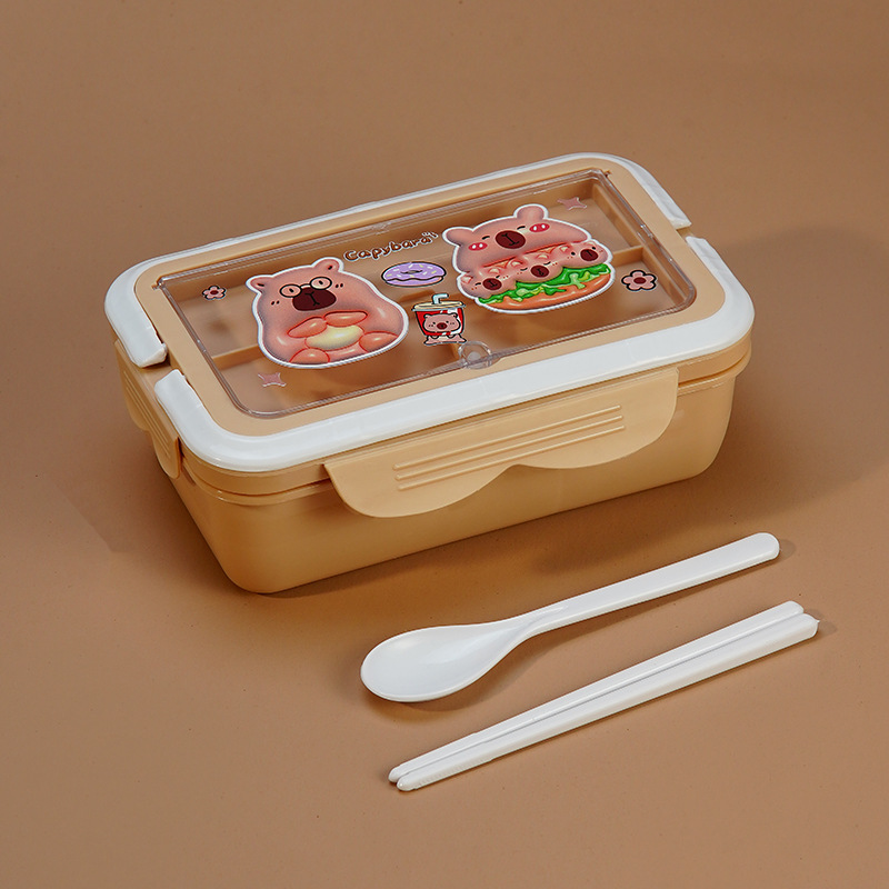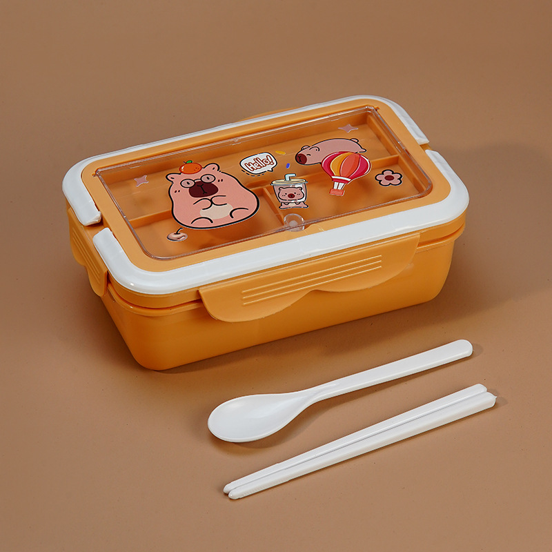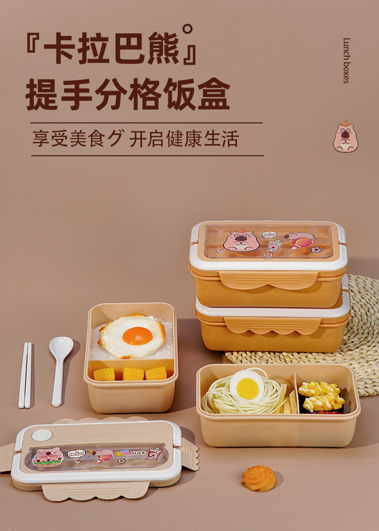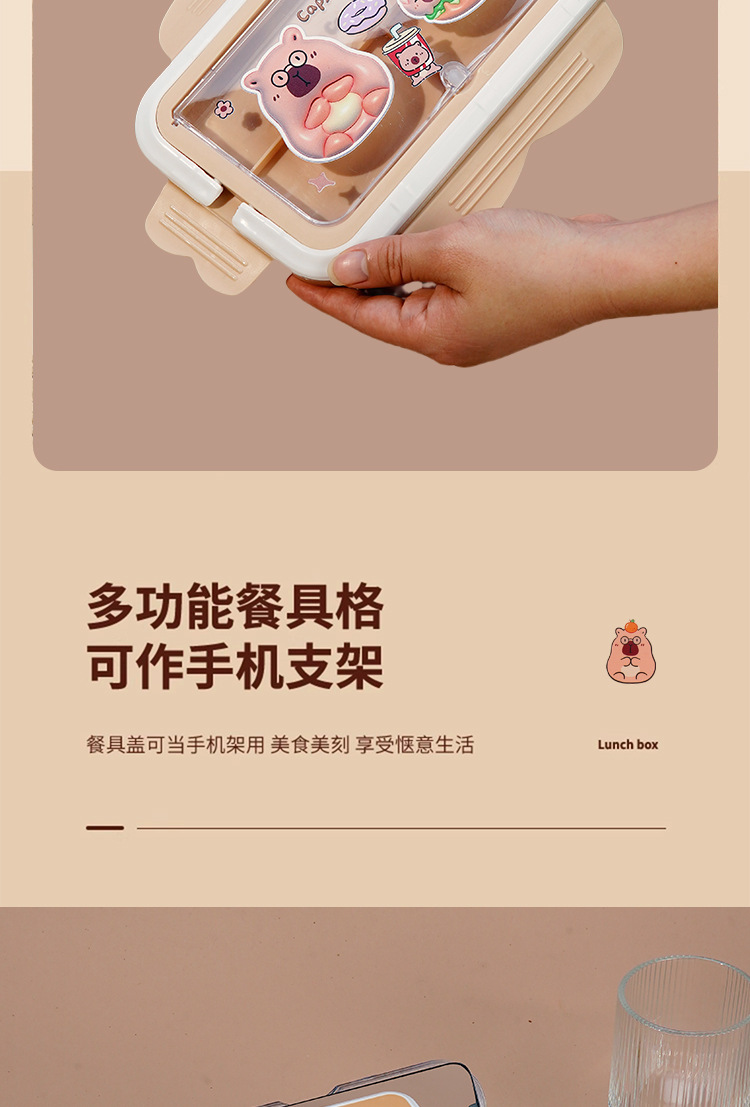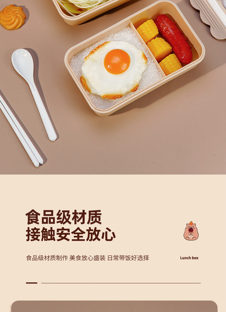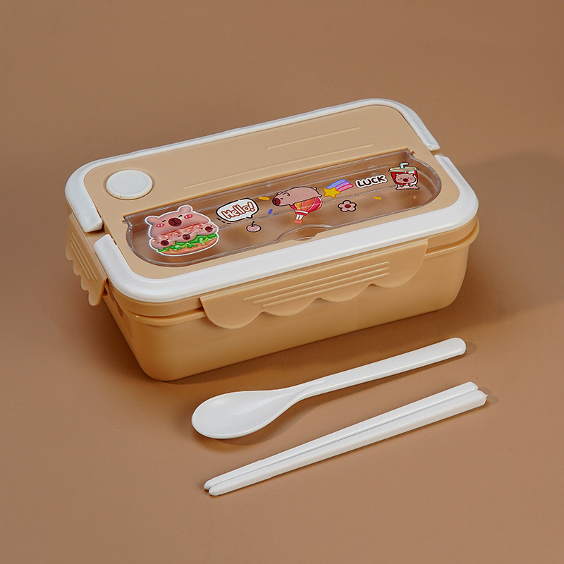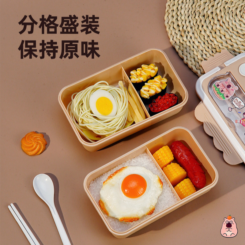 学生饭盒透明盖带勺筷餐具便当盒上班族可微波午餐盒卡通分隔饭盒