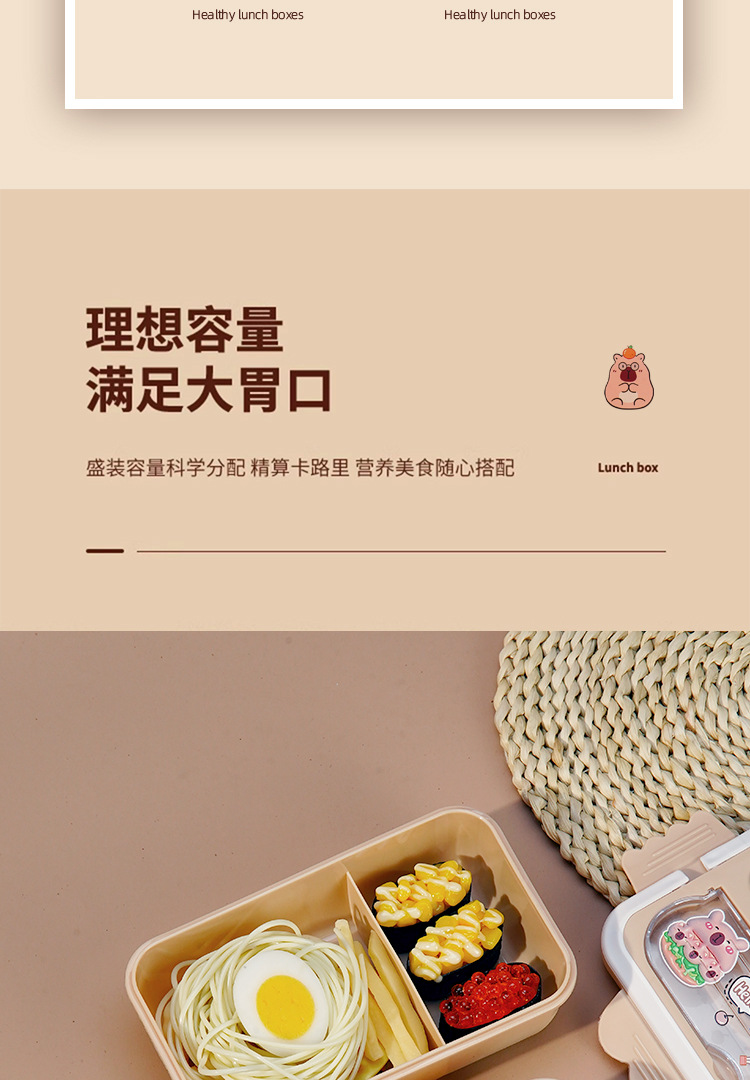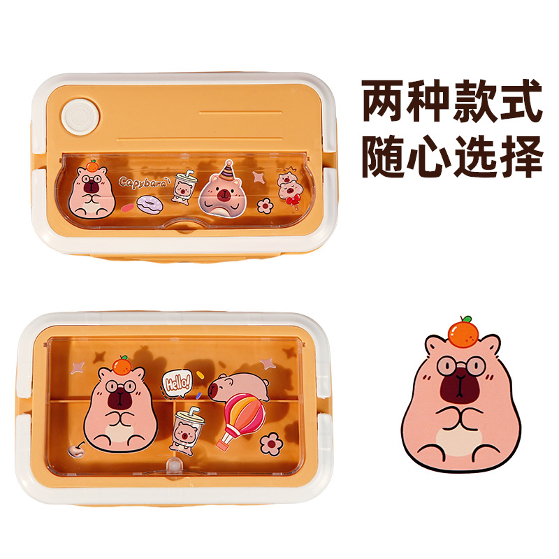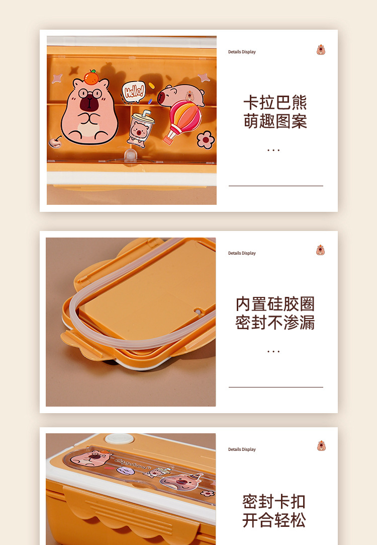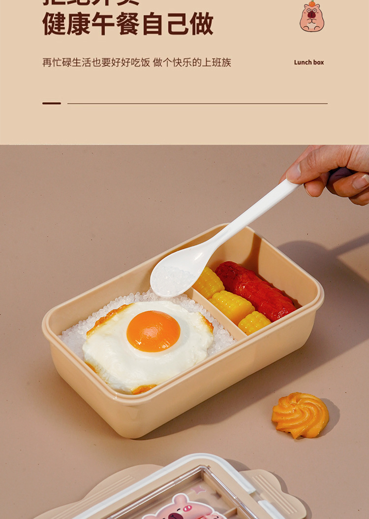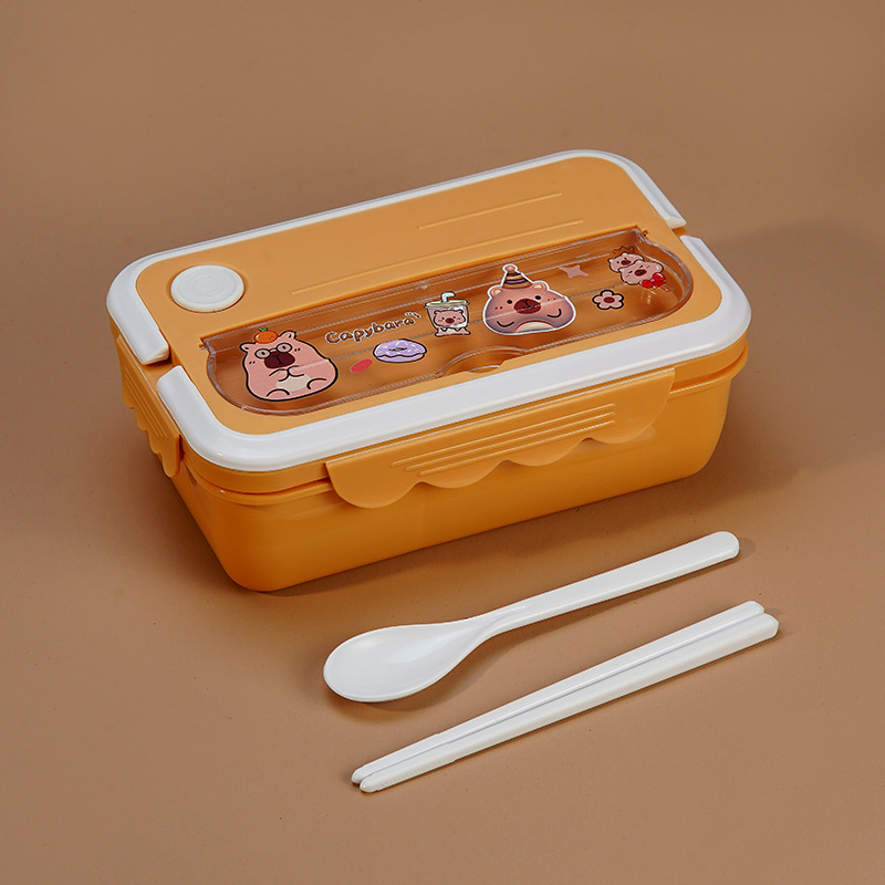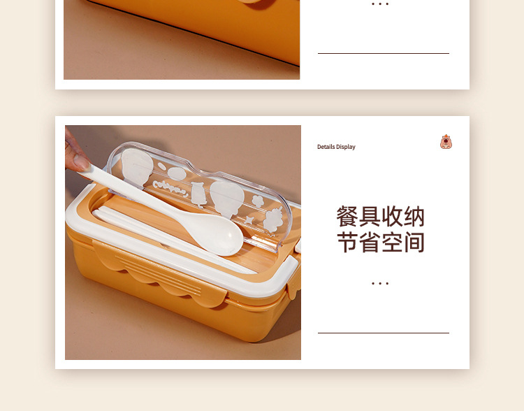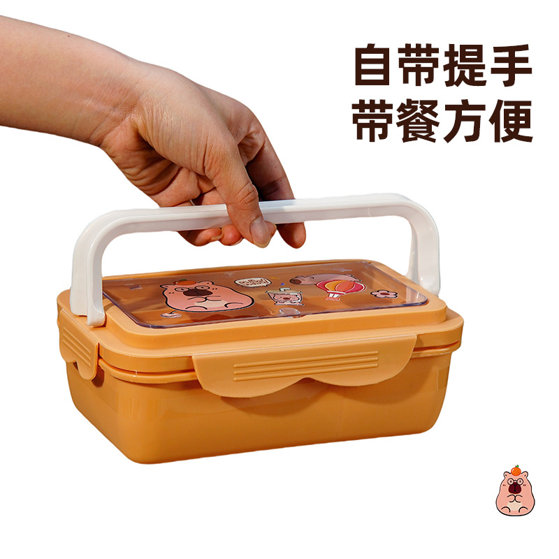 学生饭盒透明盖带勺筷餐具便当盒上班族可微波午餐盒卡通分隔饭盒