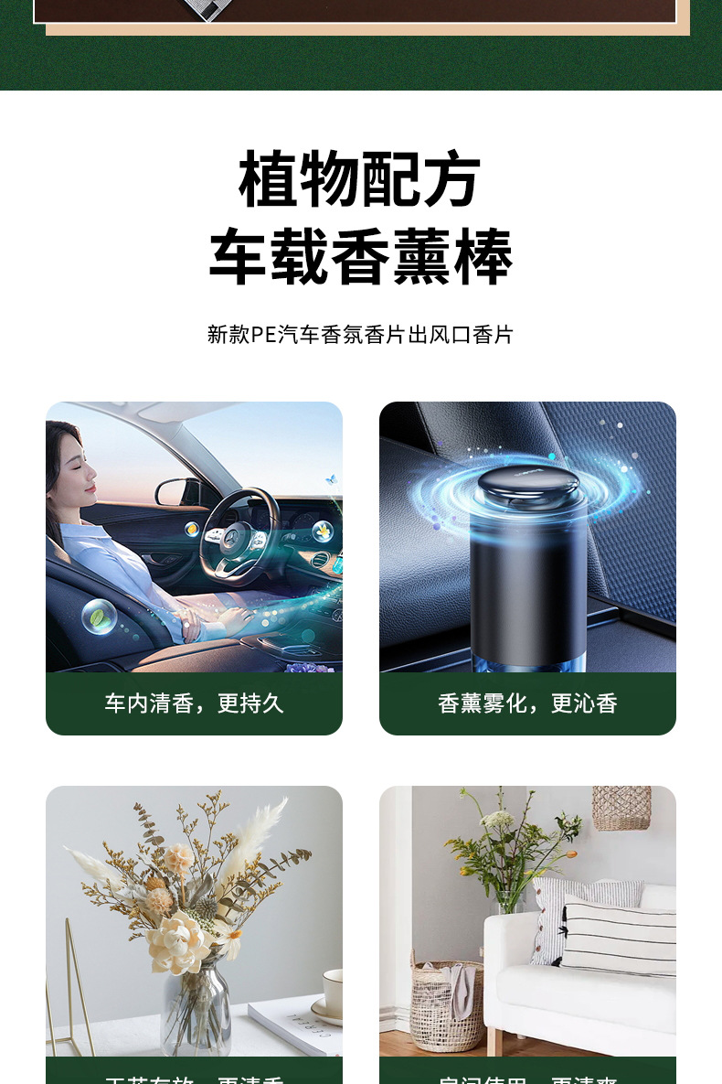 汽车香片香水棒车载PE香薰棒替换芯车内出风口固体香棒补充香条