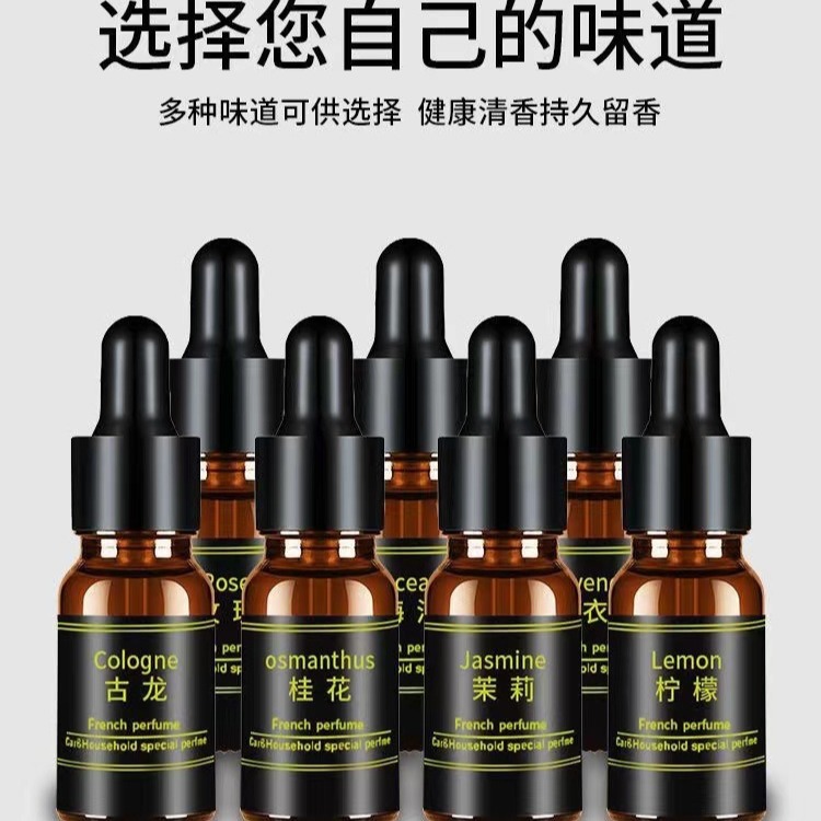 新款汽车香水自然植物配方多款香型精油汽车出风口香薰补充液批发