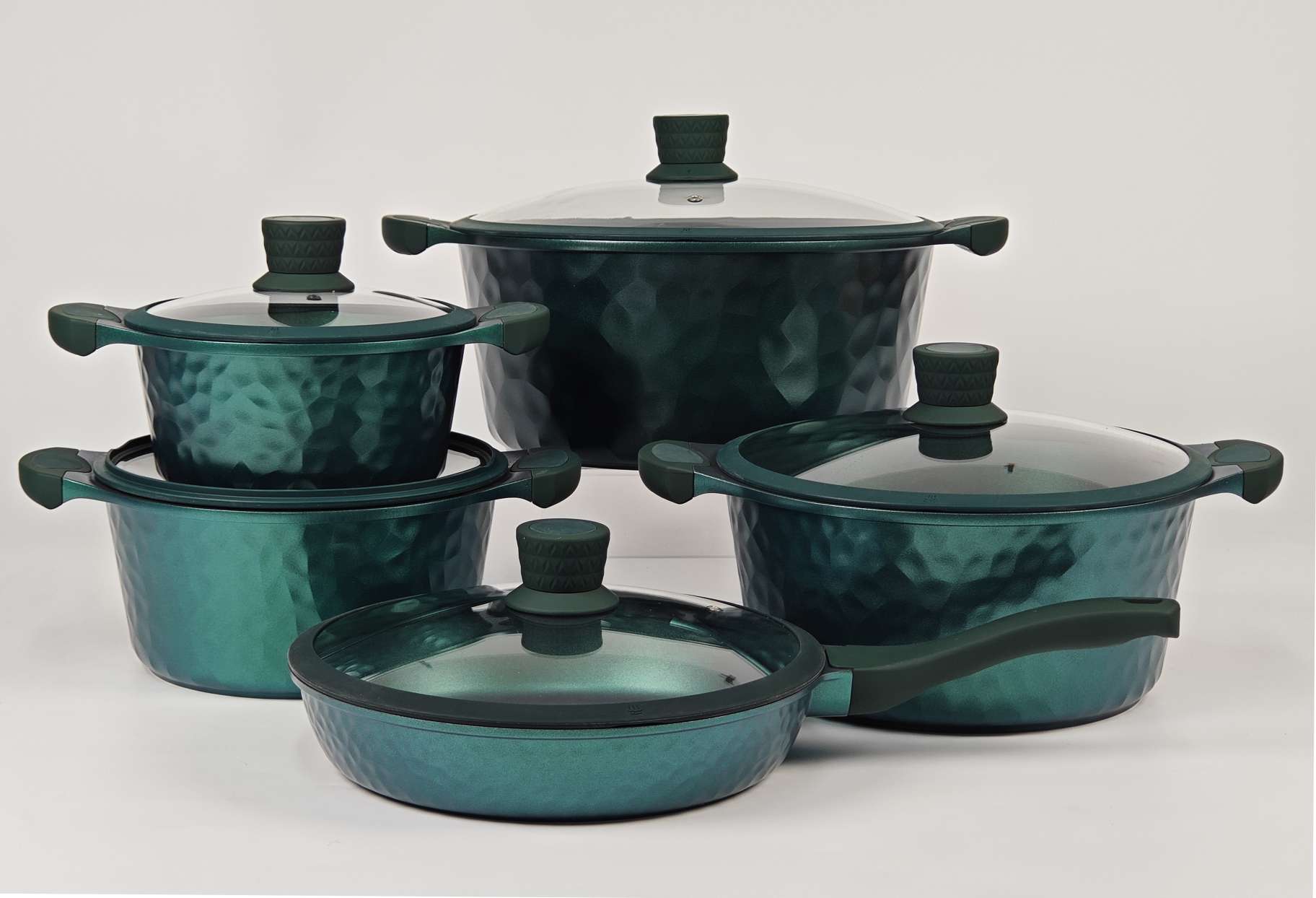 家用铝锅不粘锅十件套硅胶盖配置高端彩盒套装锅具厨房专用铝锅具