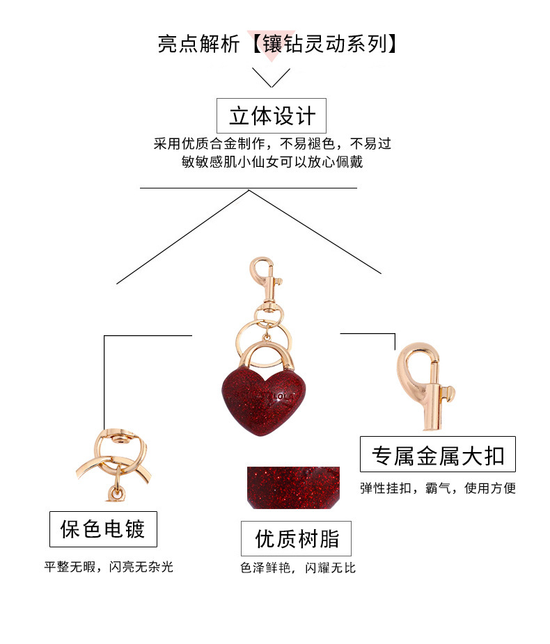 新款跨境时尚情人节情侣爱心钥匙扣包包钥匙扣挂件汽车钥匙扣挂件