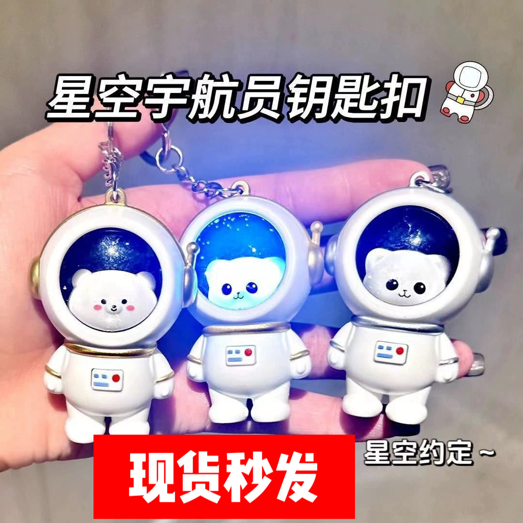 会说iloveyou的星空宇航员钥匙扣挂件发光发生太空小熊创意挂件
