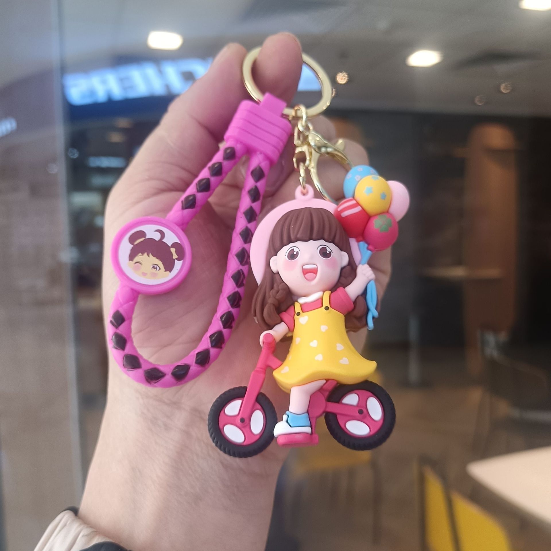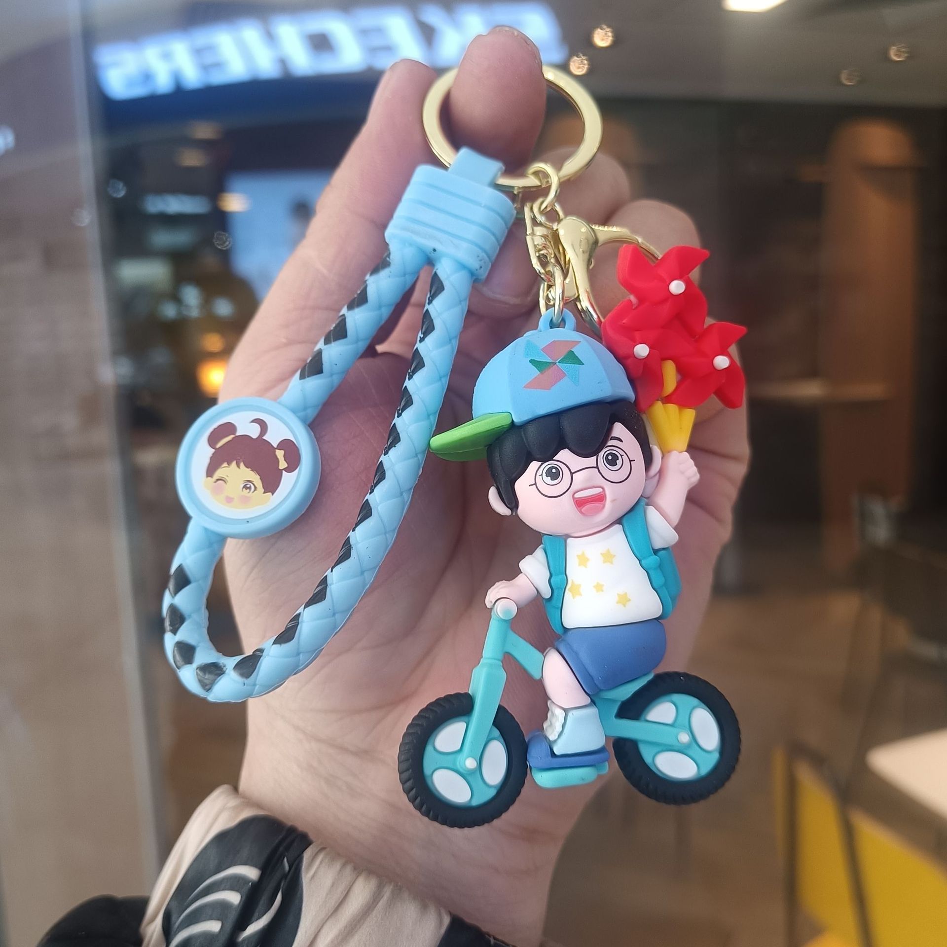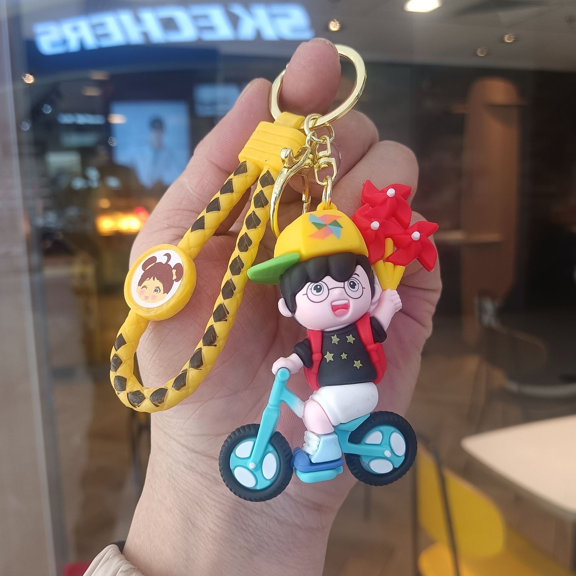 创意骑单车男女孩钥匙扣书包挂件可爱情侣汽车钥匙链抓娃机小礼品