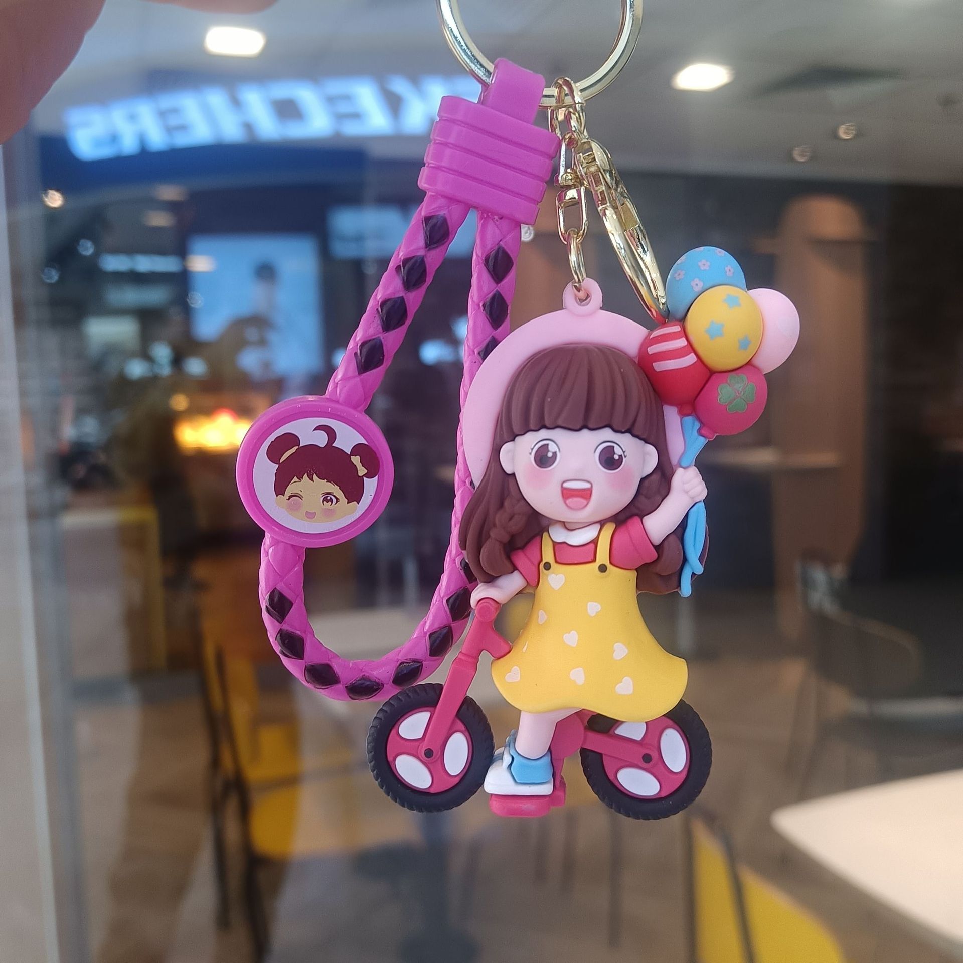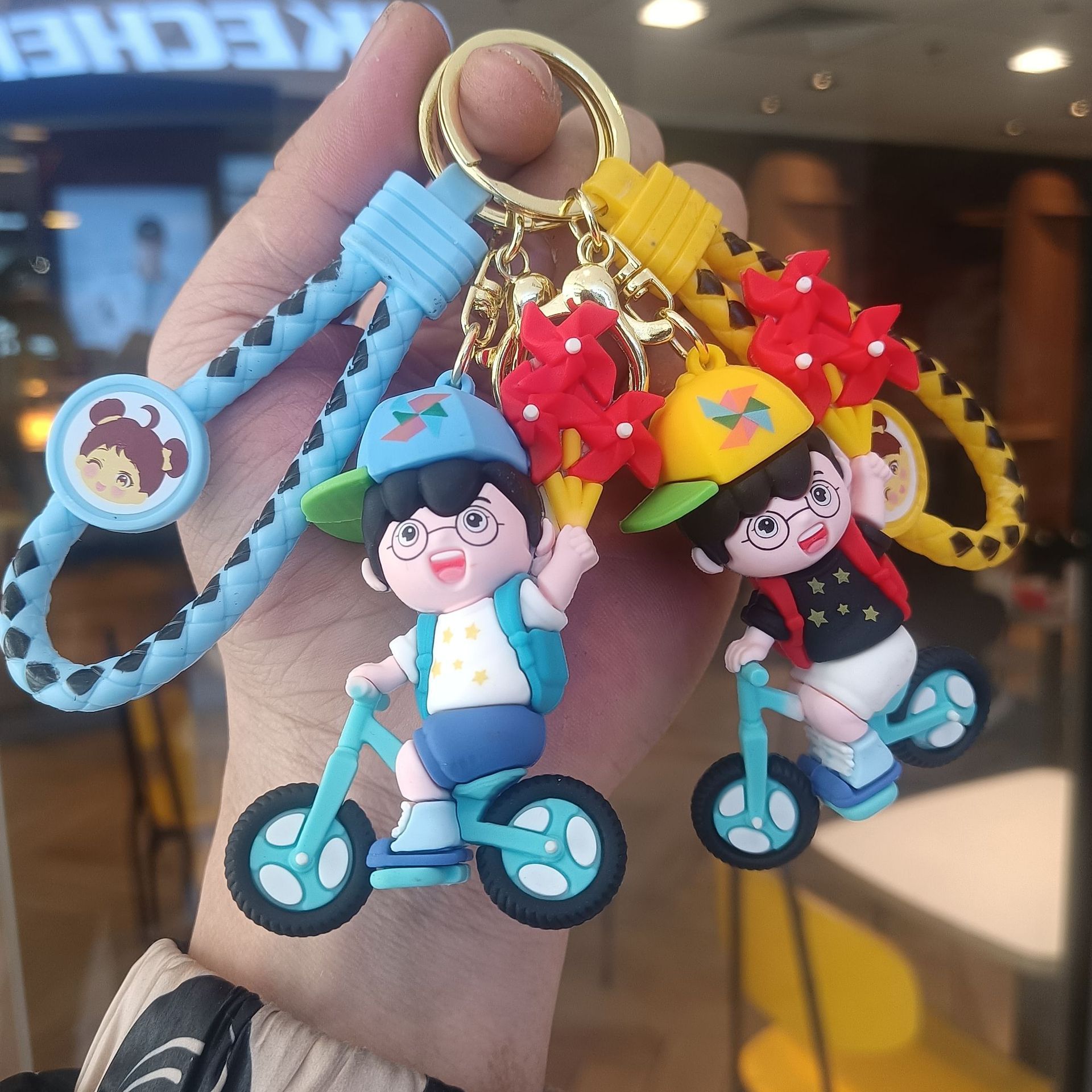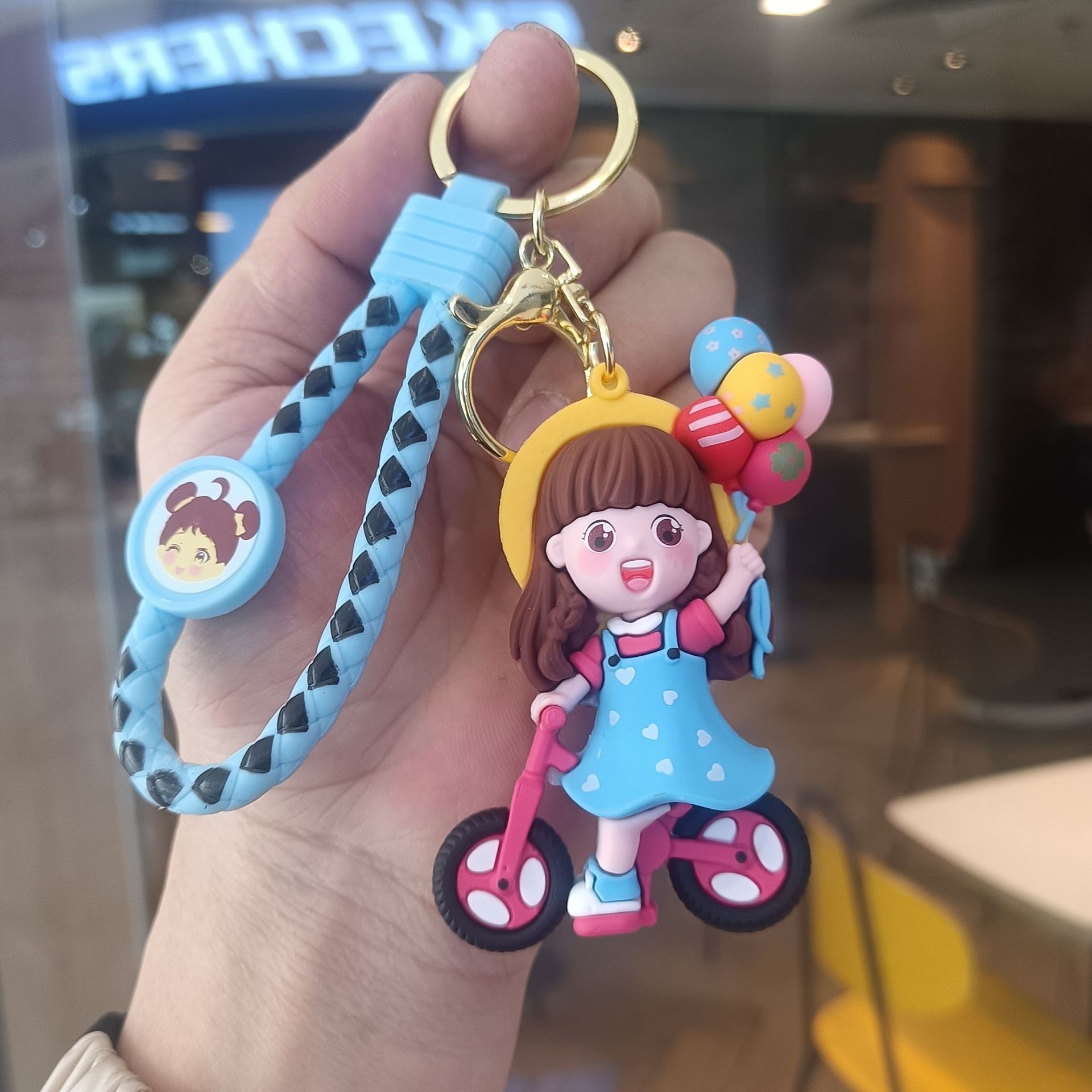 创意骑单车男女孩钥匙扣书包挂件可爱情侣汽车钥匙链抓娃机小礼品