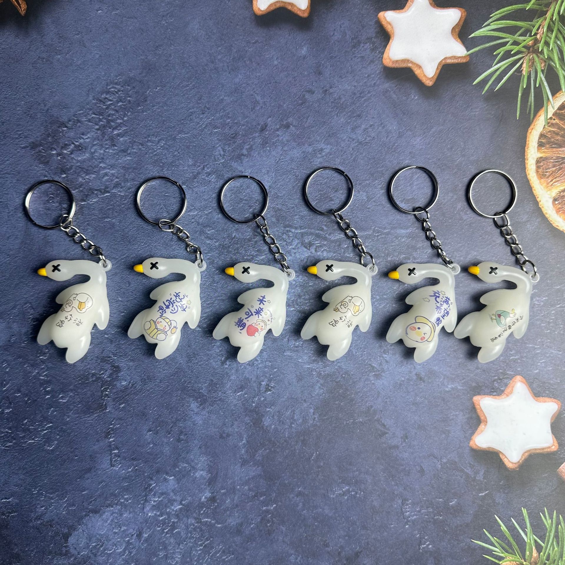 爆款夜光烤鸭挂件汽车挂件创意钥匙扣鸭子挂饰网红可爱车内装饰