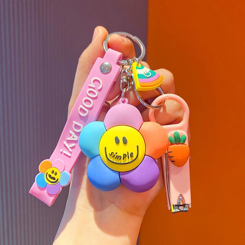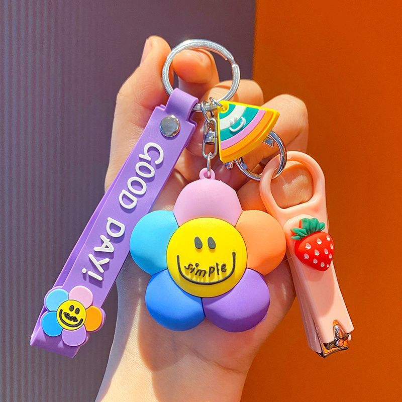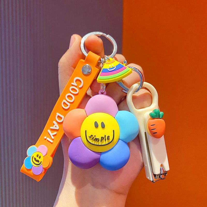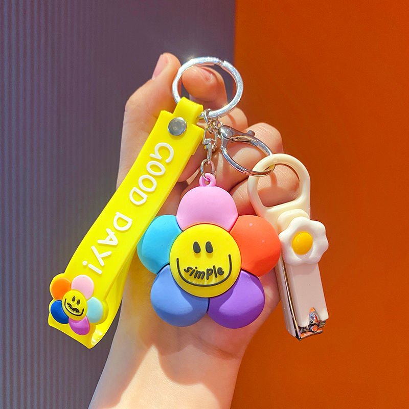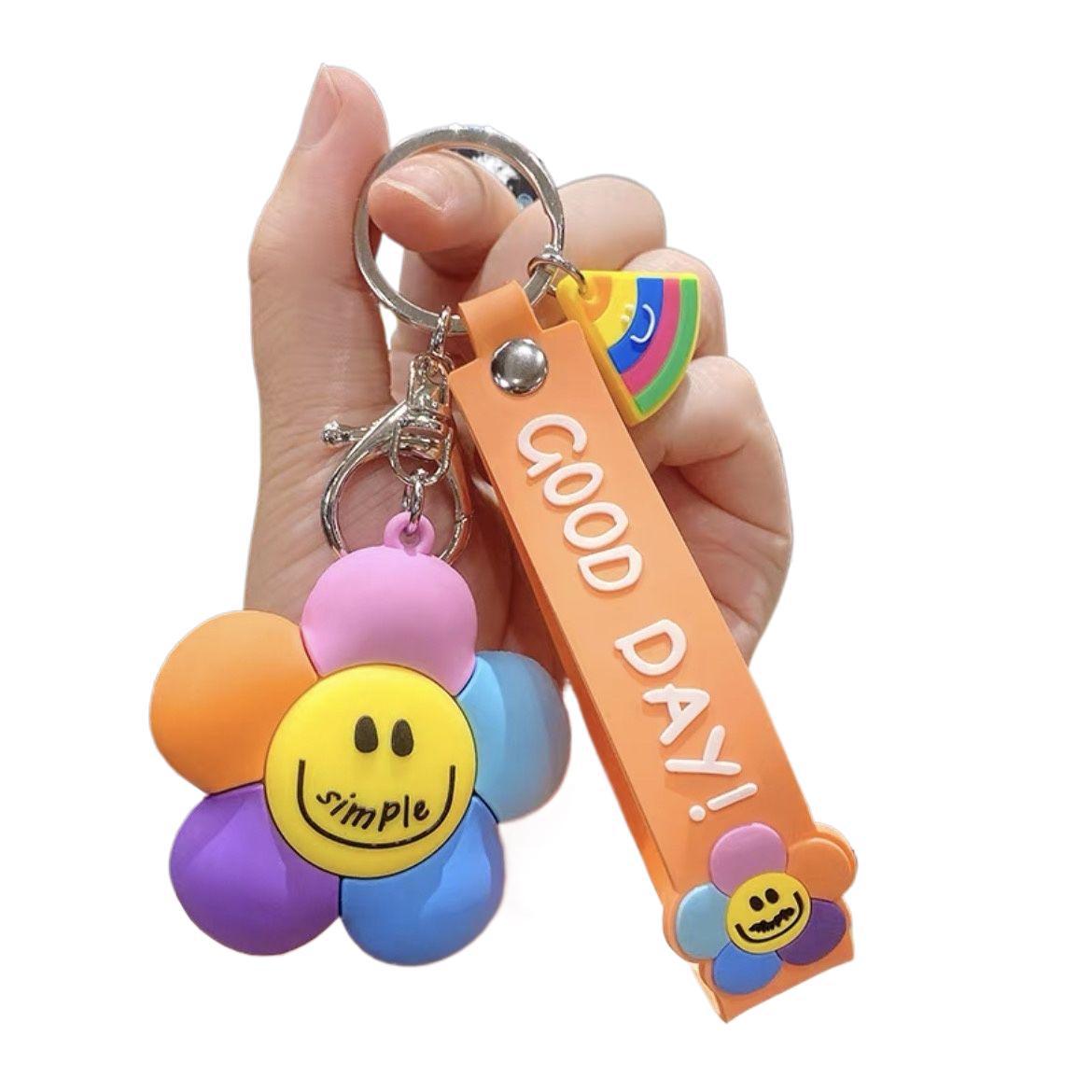 微笑七彩太阳花萌钥匙挂件少女心钥匙链配饰钥匙扣新款2025