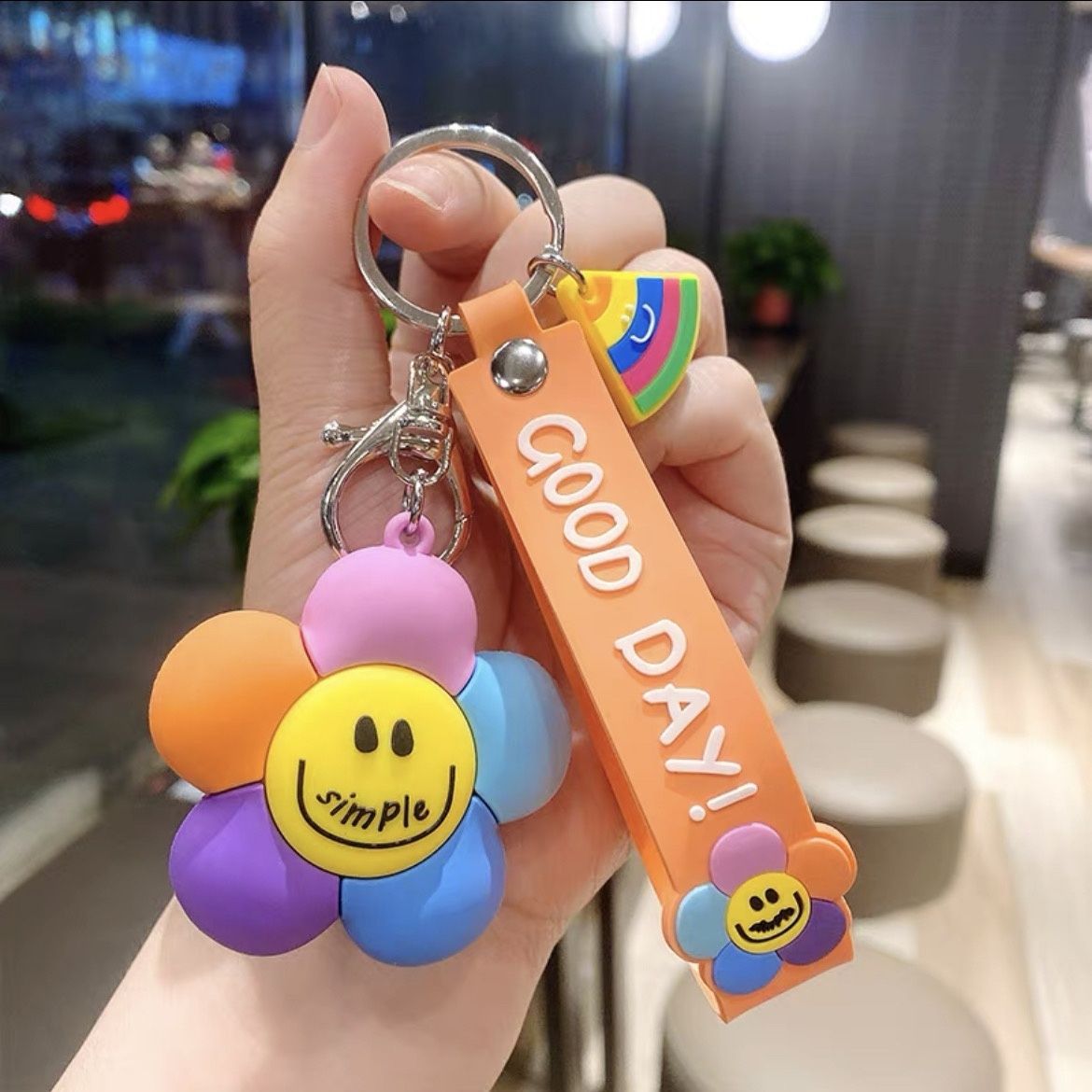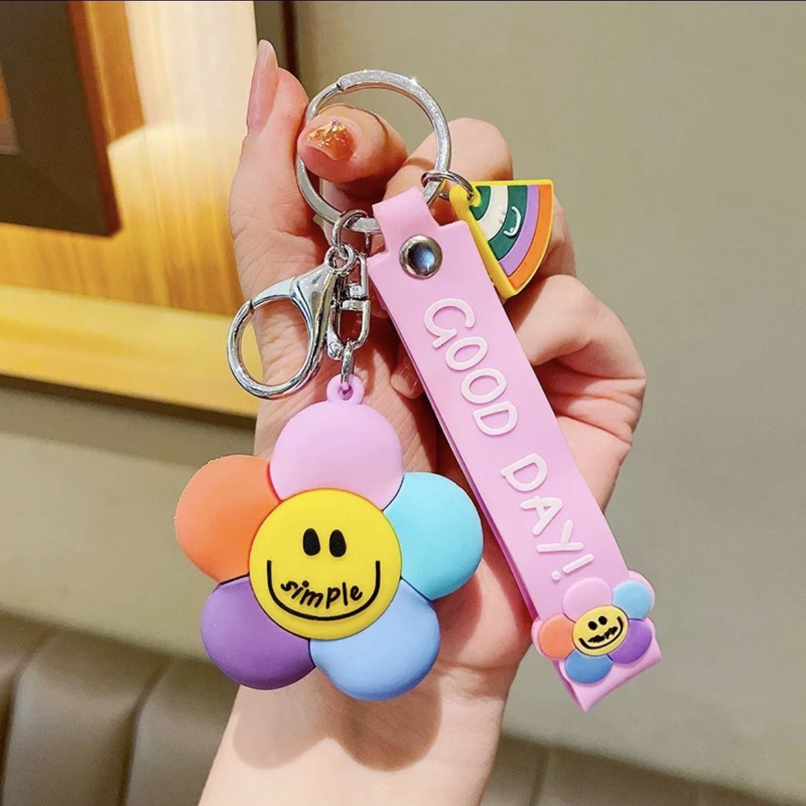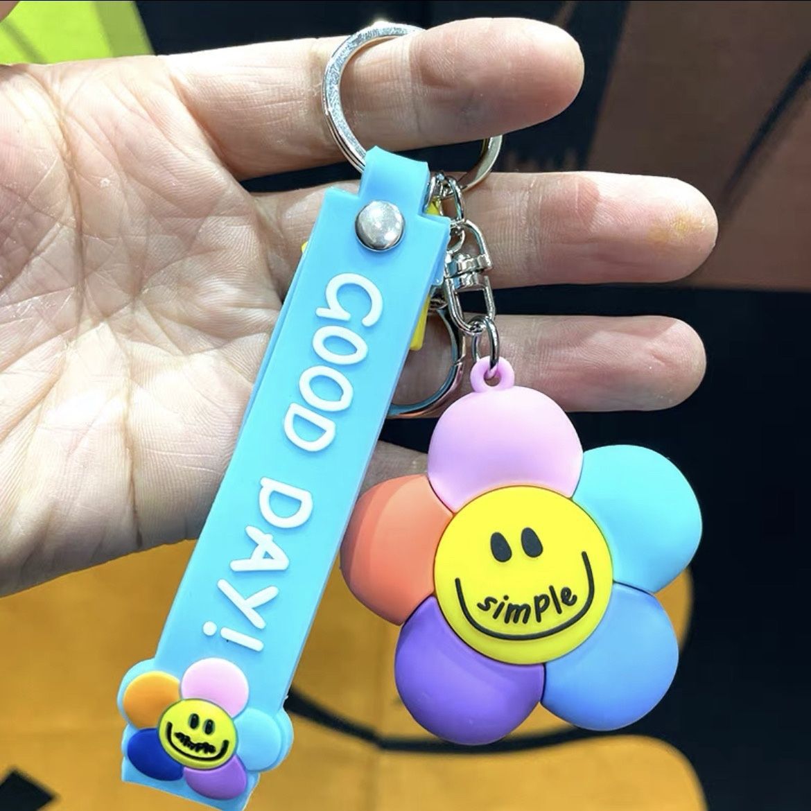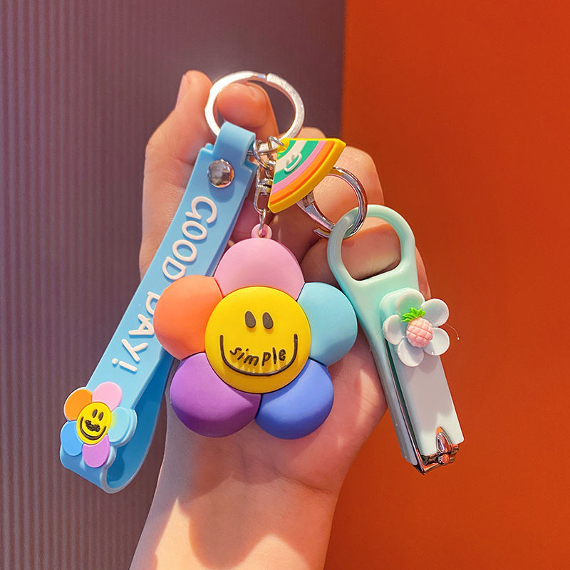 微笑七彩太阳花萌钥匙挂件少女心钥匙链配饰钥匙扣新款2025