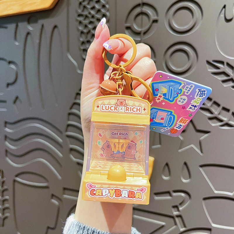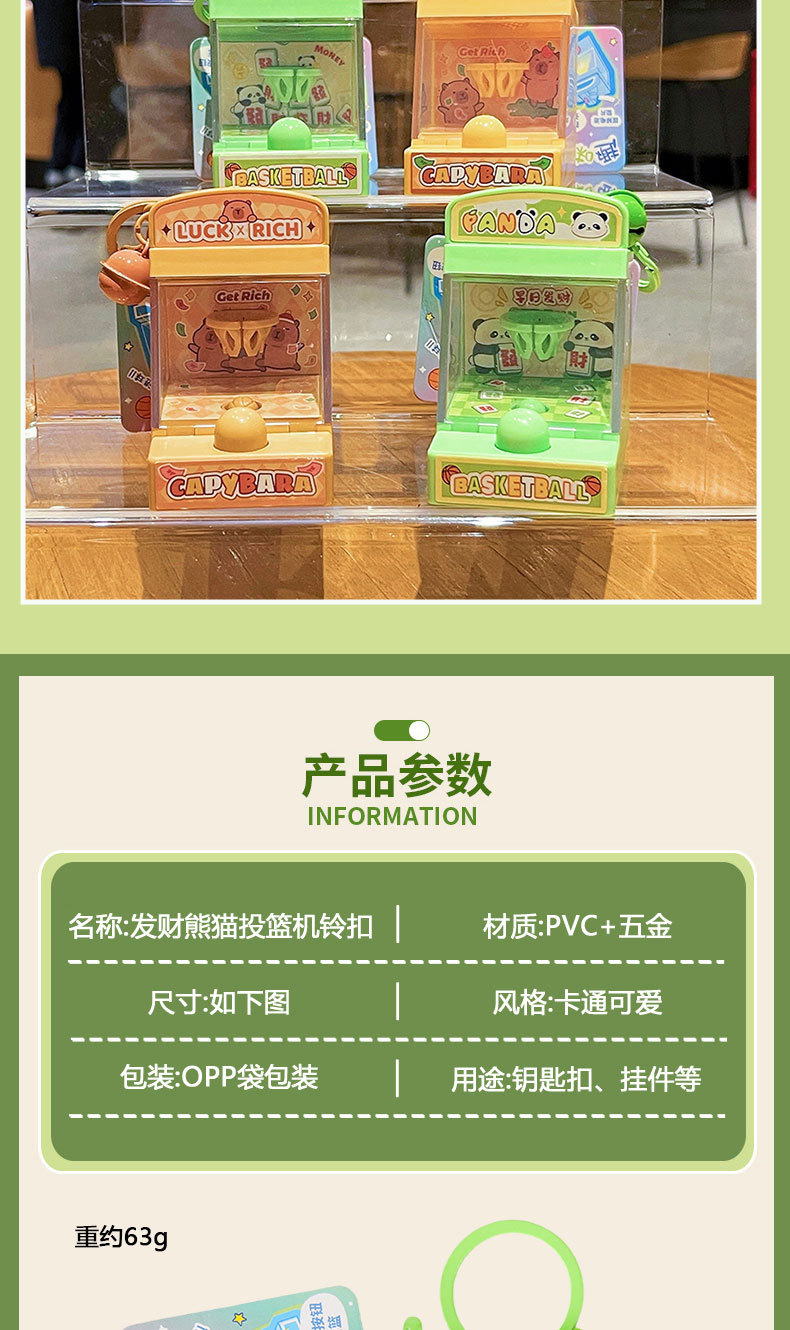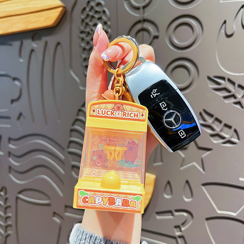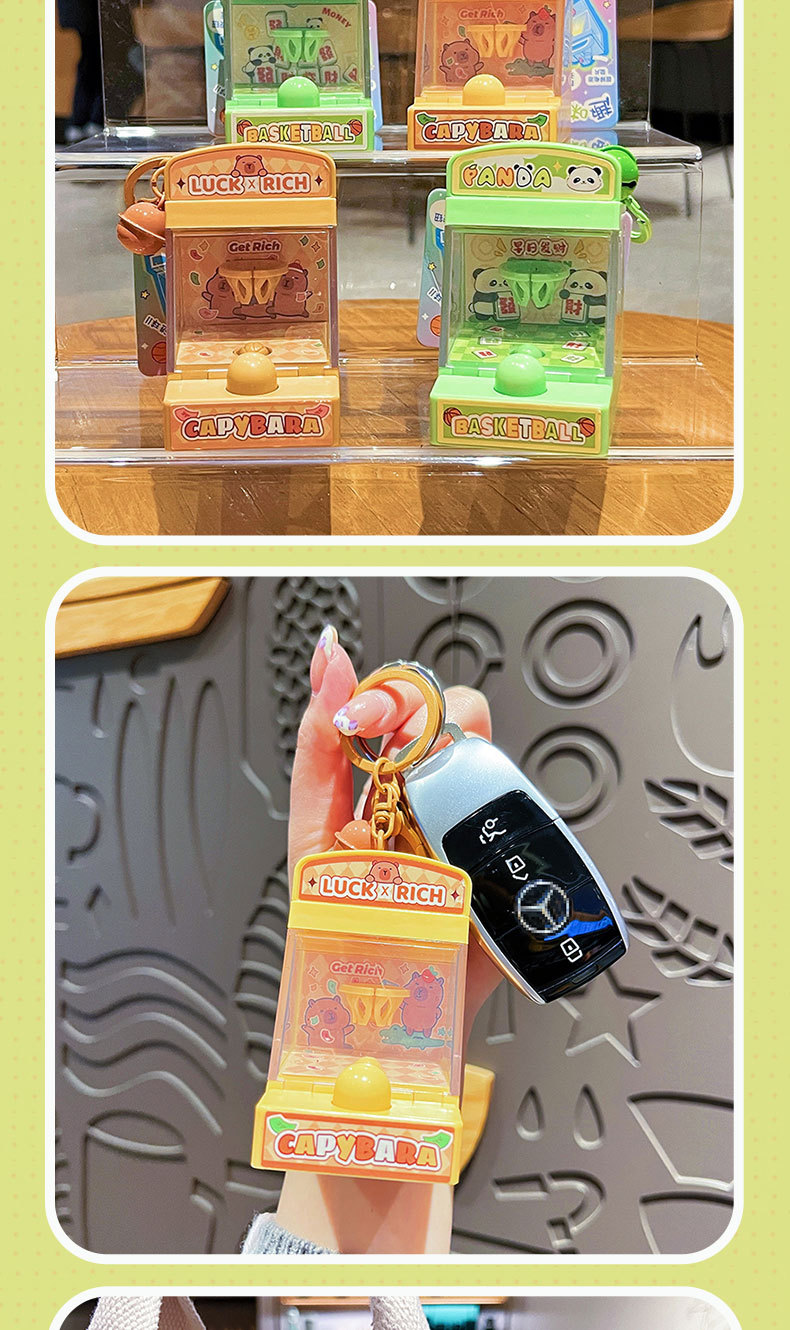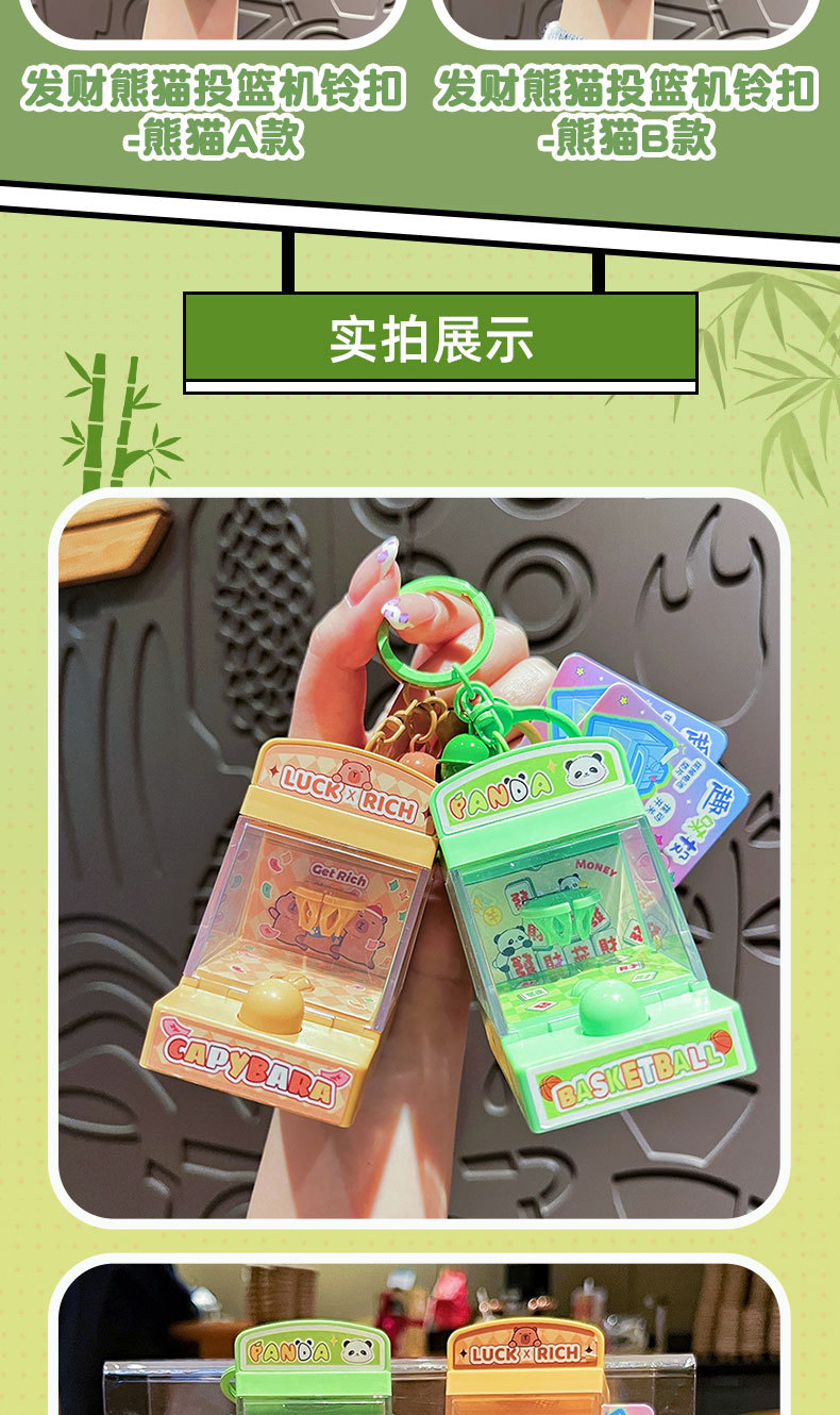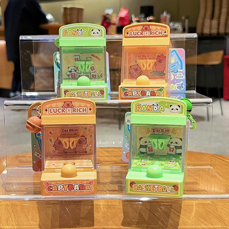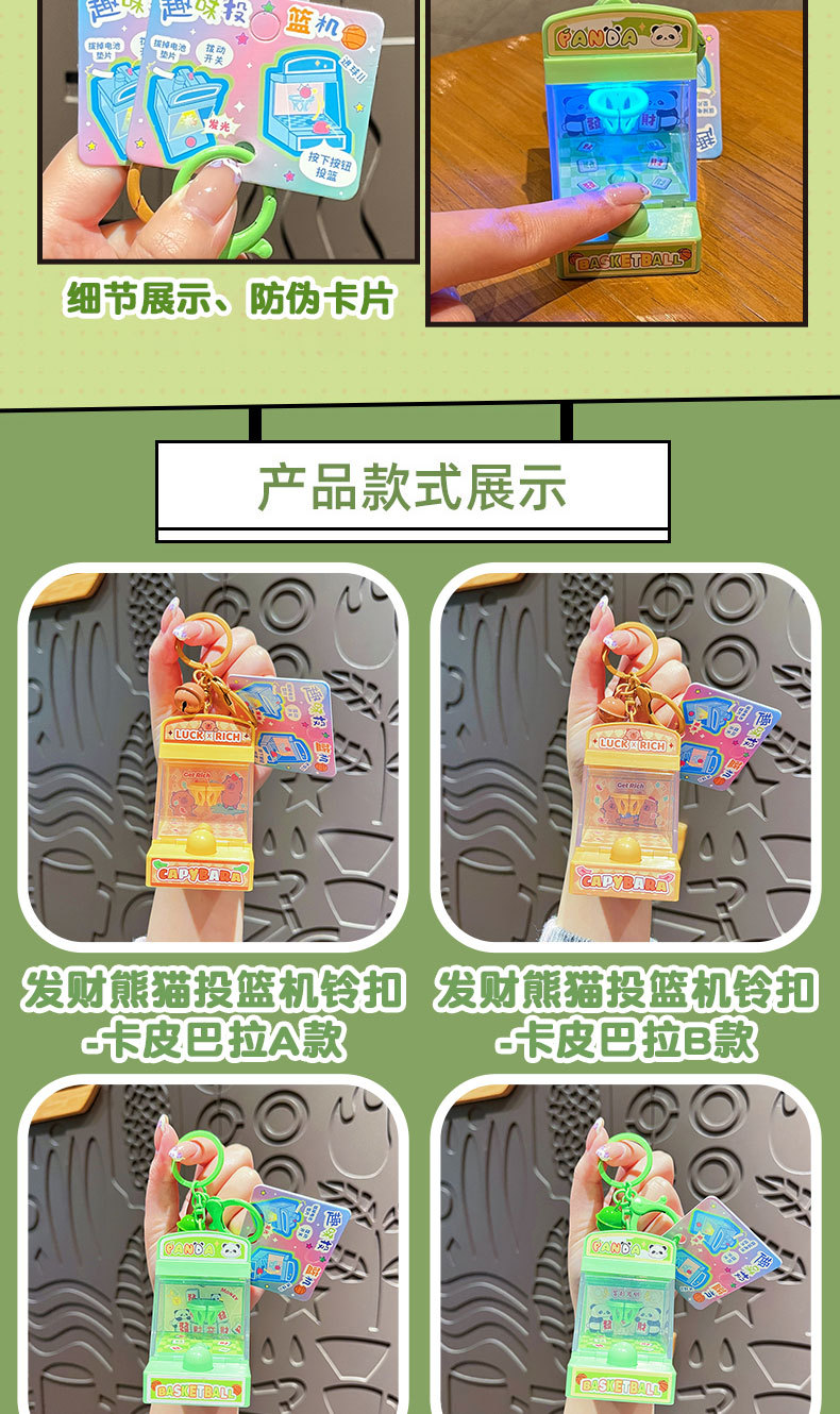 创意发财熊猫投篮机钥匙扣可爱卡皮巴拉学生包包挂件发光儿童玩具