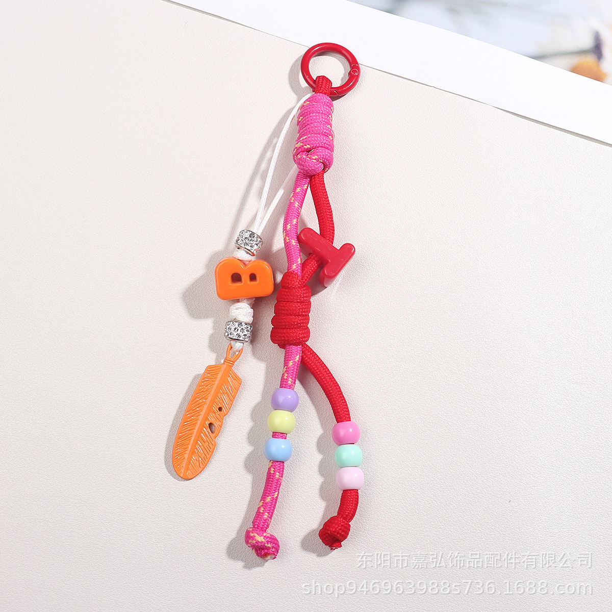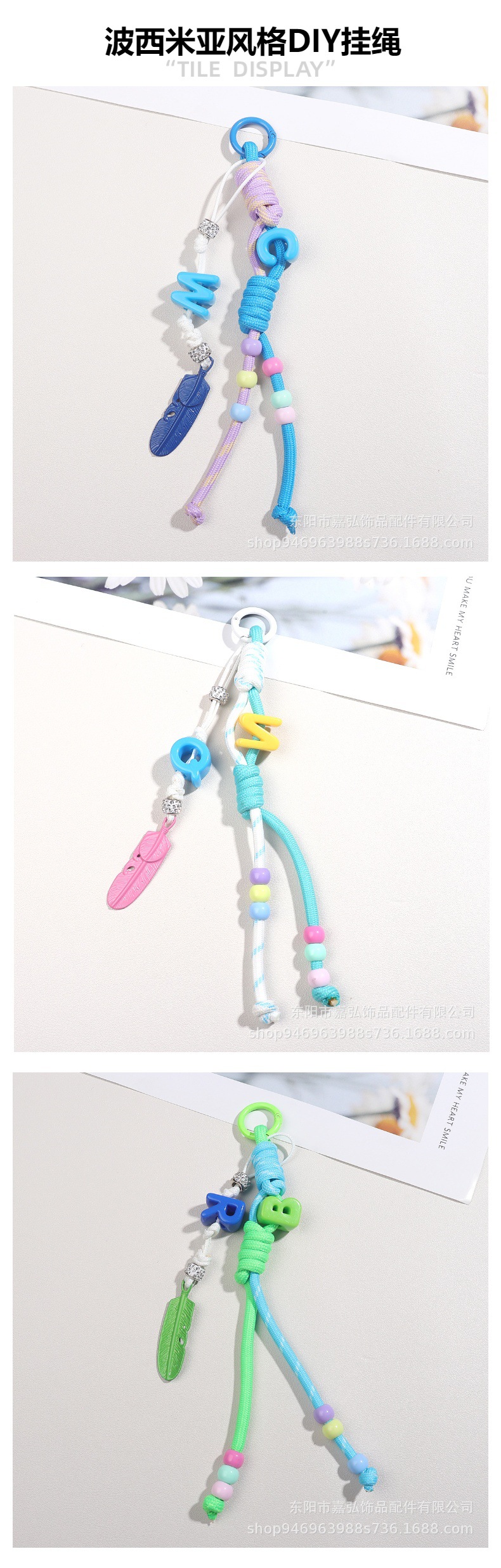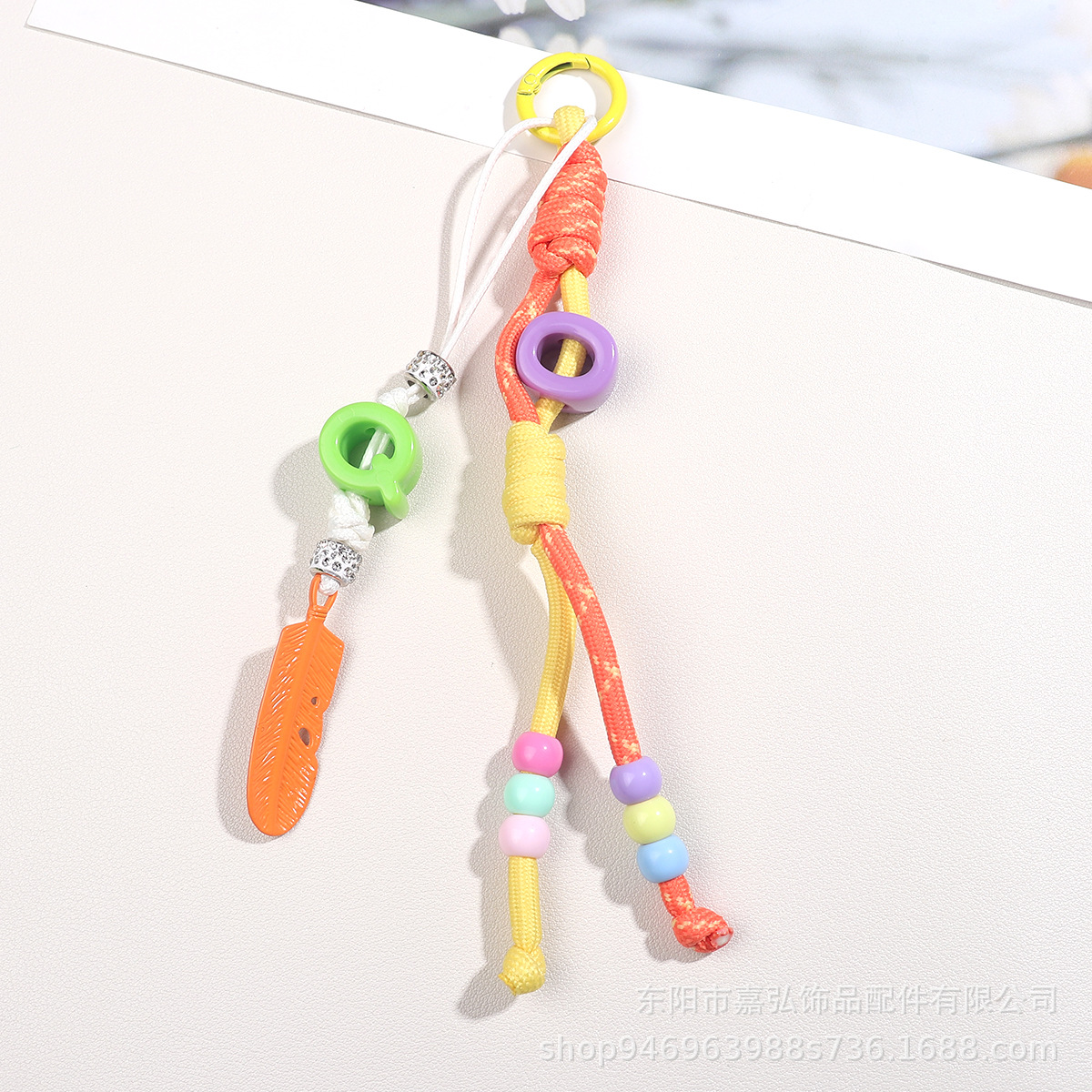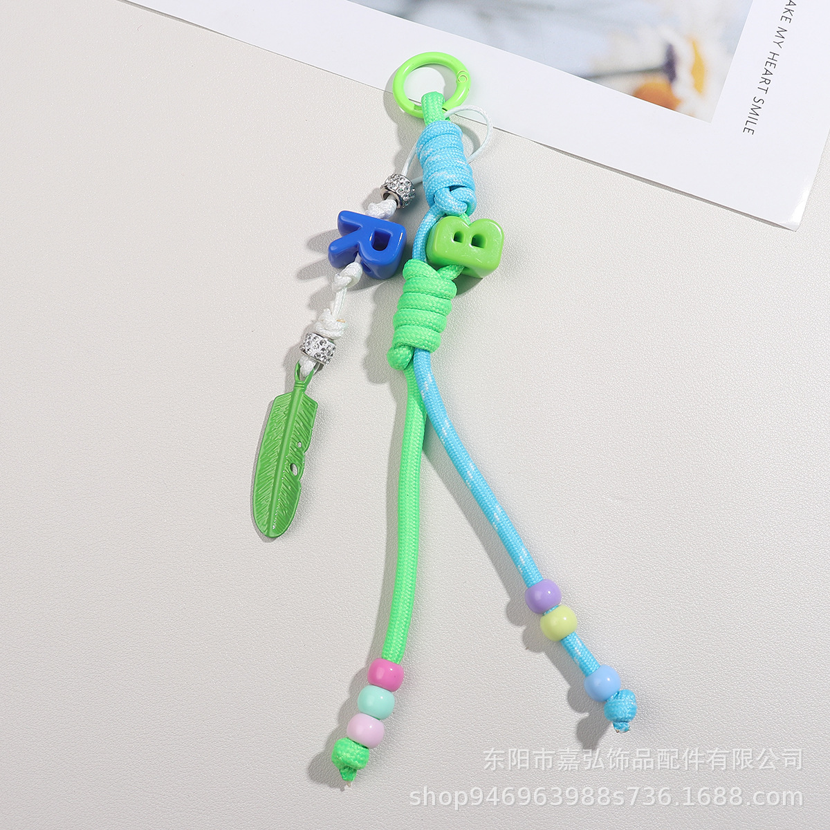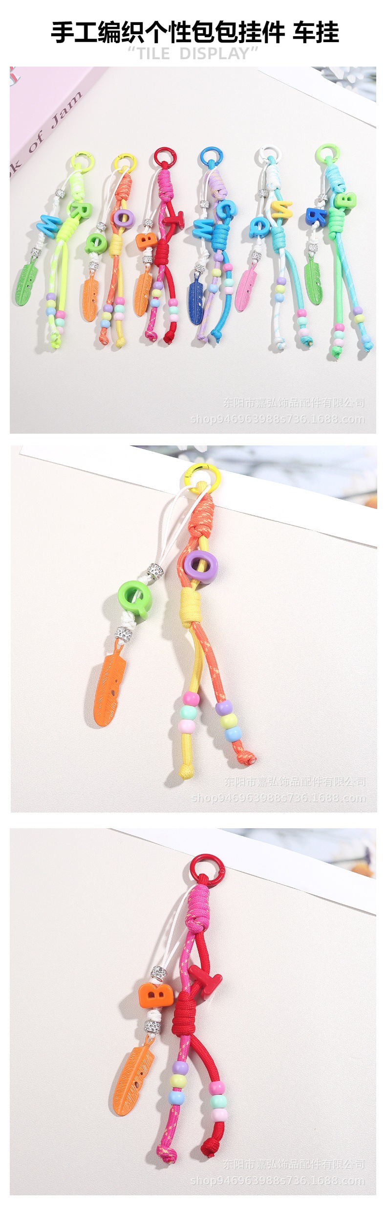新款多巴胺字母串珠带钻女包钥匙扣时尚手工编织挂件服装箱包挂饰