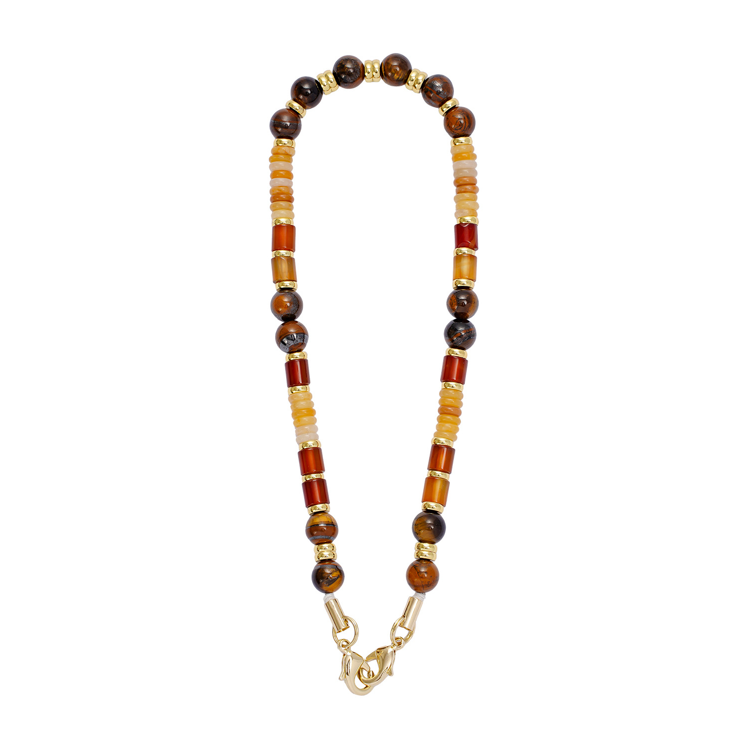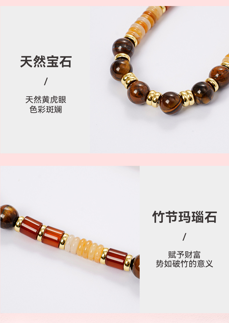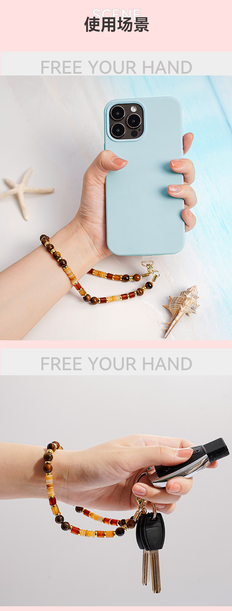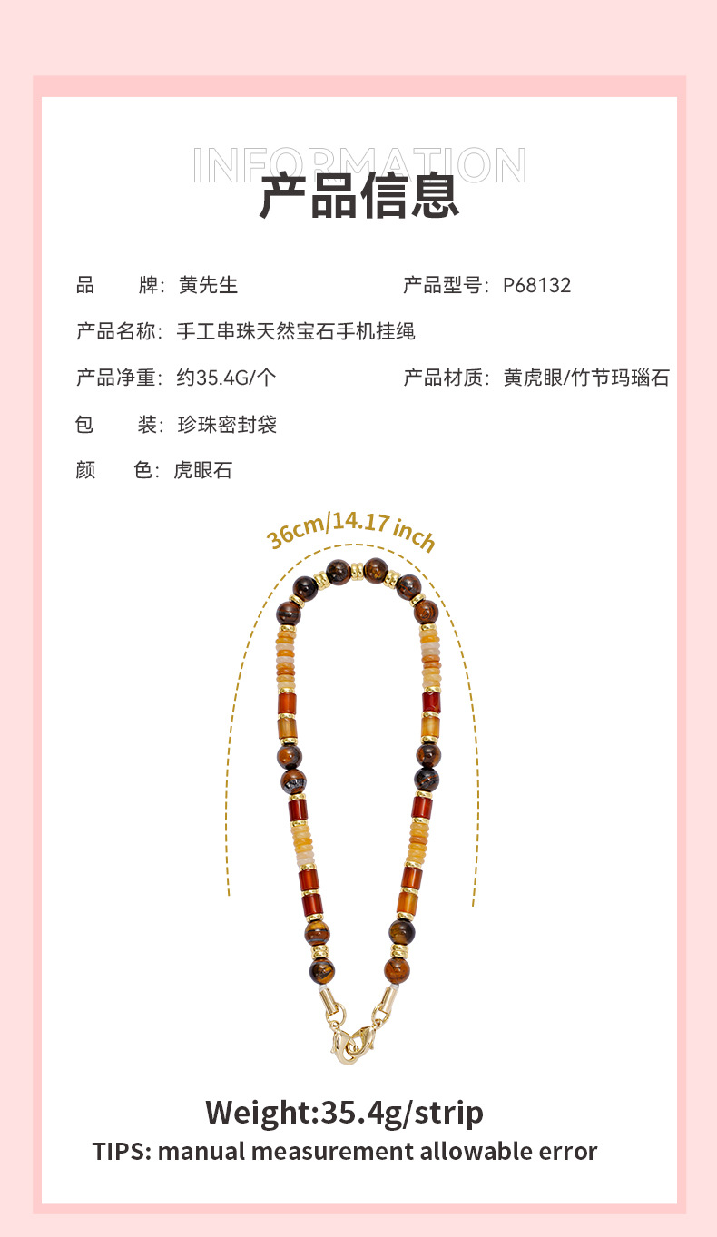 半宝石黄虎眼串珠手机链高级感防丢短款玛瑙简约亚马逊手机挂饰