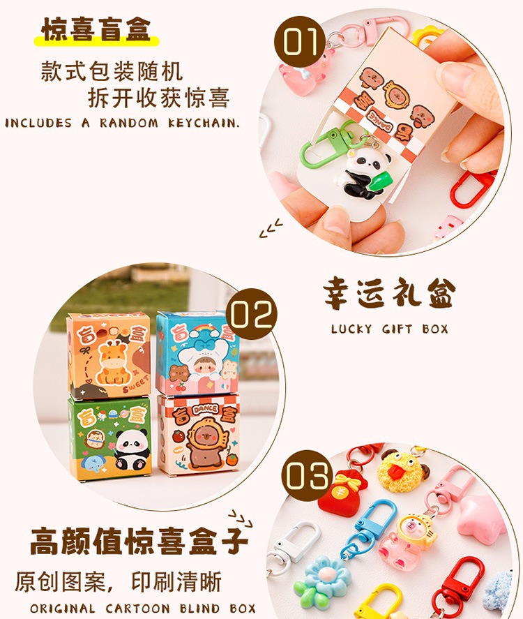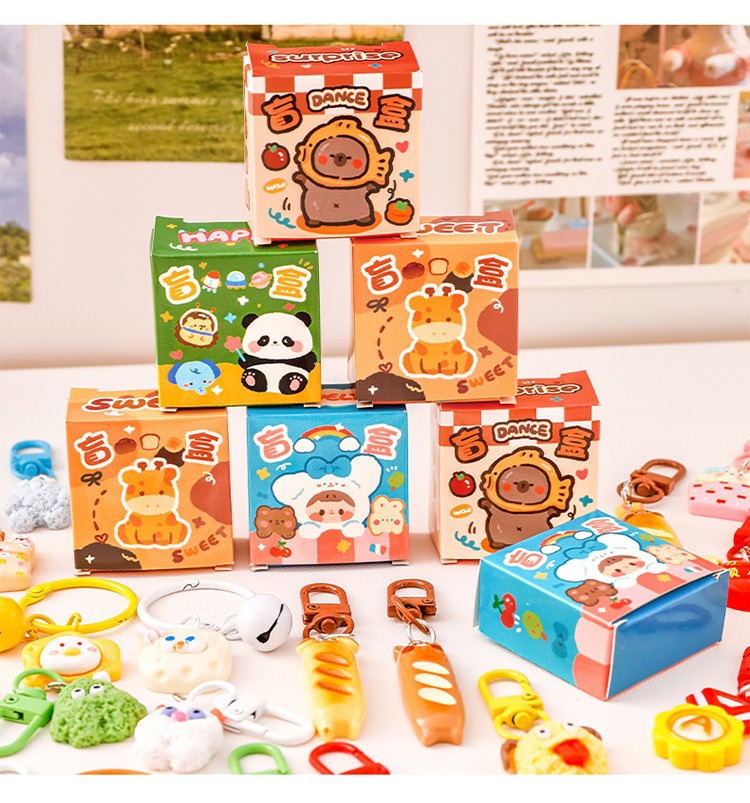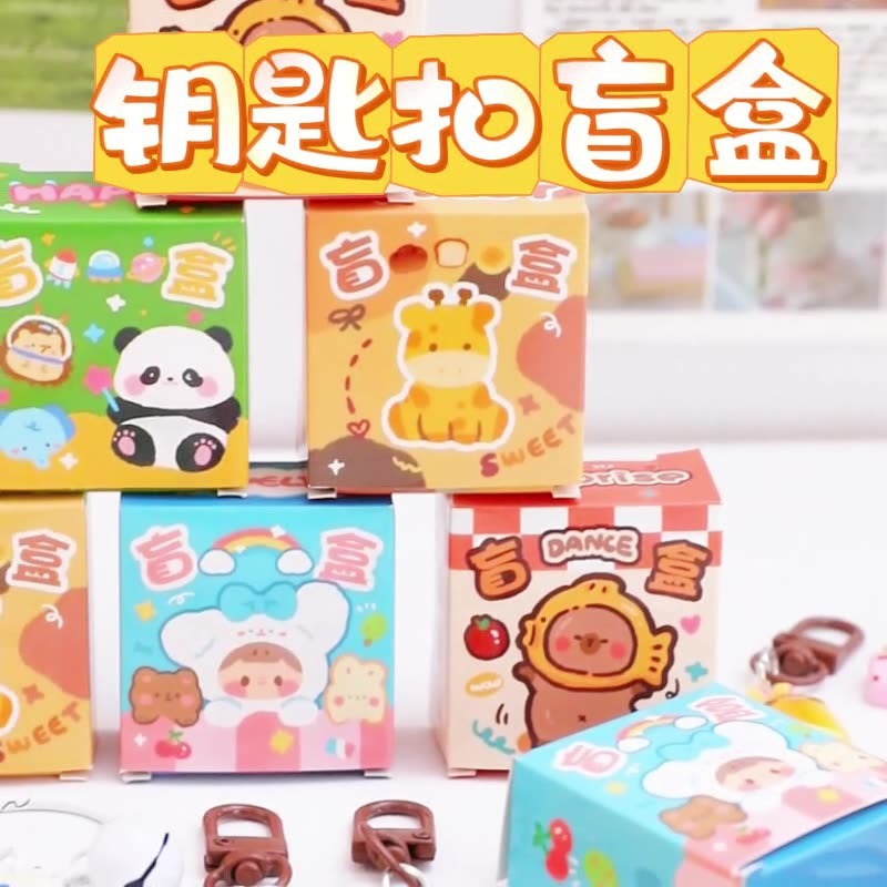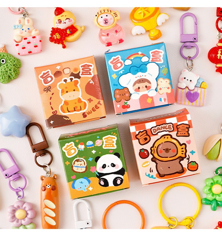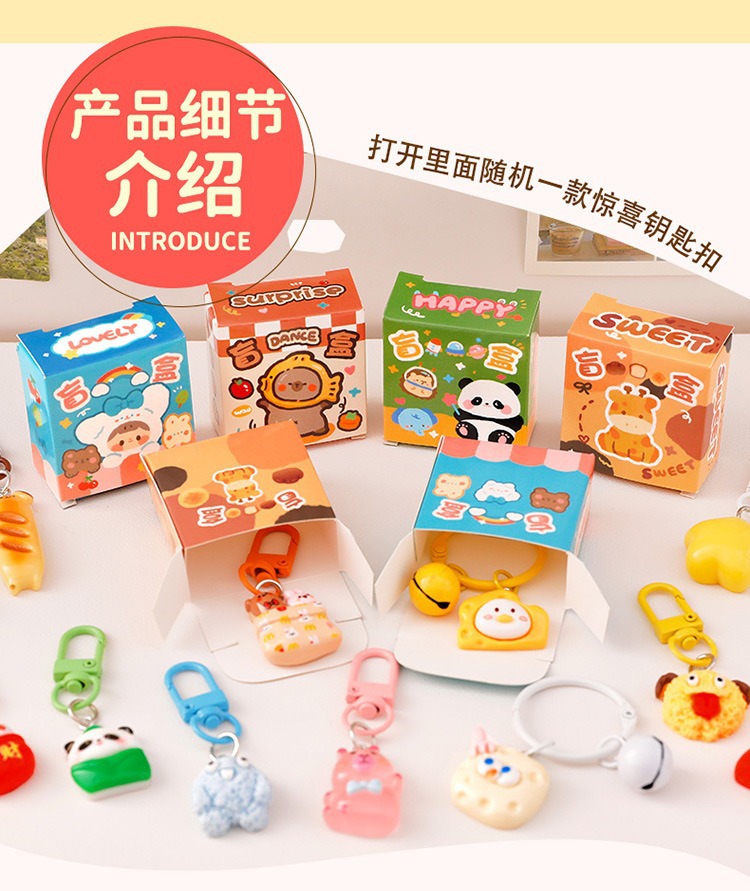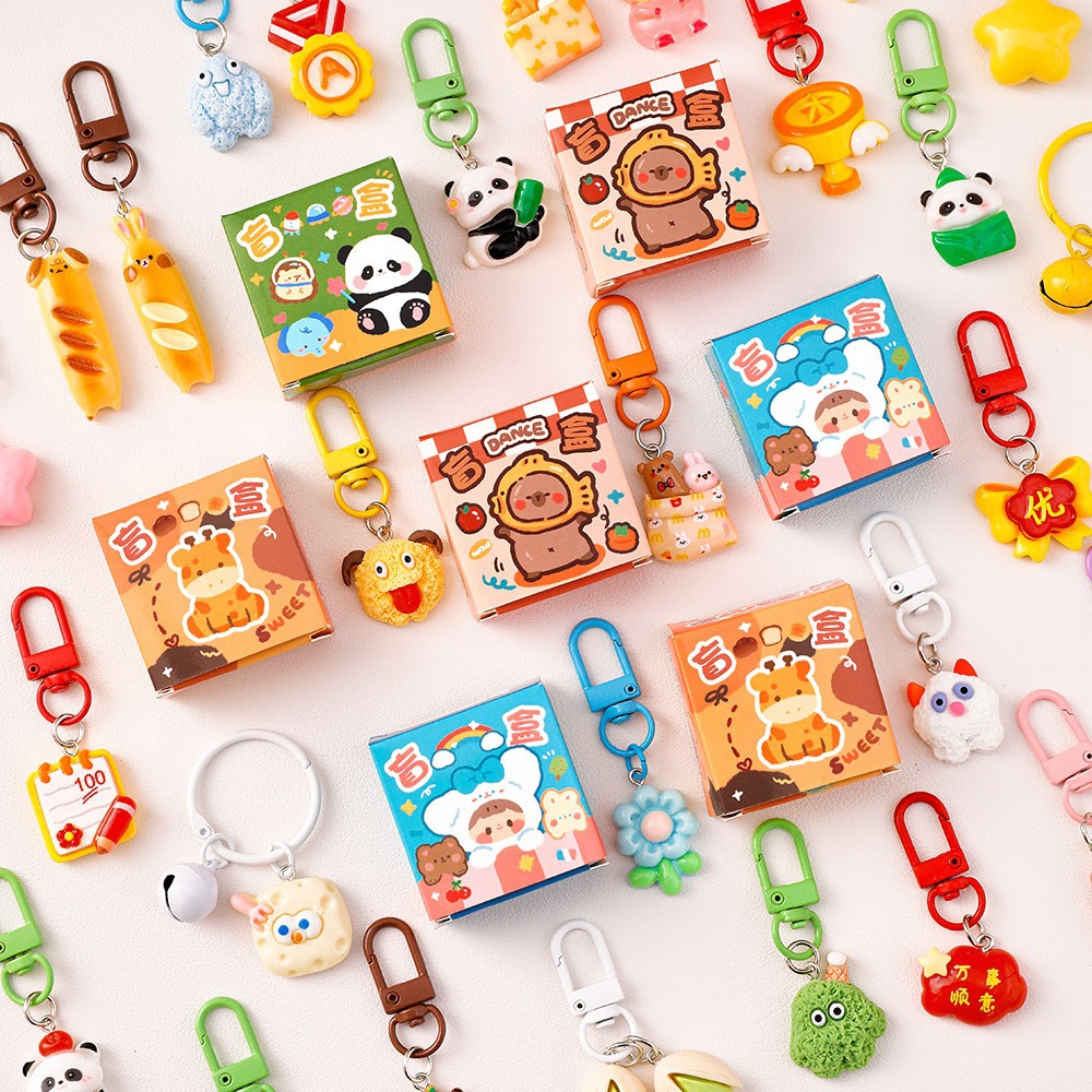 卡通潮玩盲盒钥匙扣迷你微缩小盲盒可爱惊喜钥匙圈diy挂件小礼品