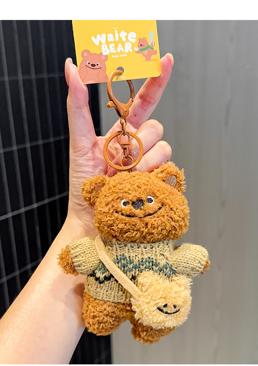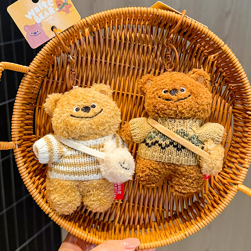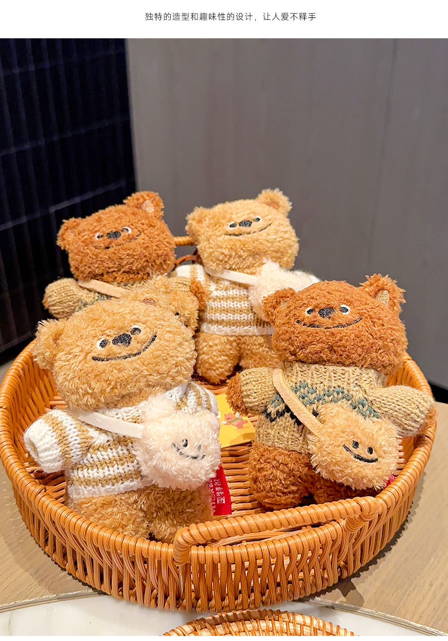 正版歪特熊毛衣挎包挂件毛绒公仔钥匙扣 小众少女心小熊玩偶包挂