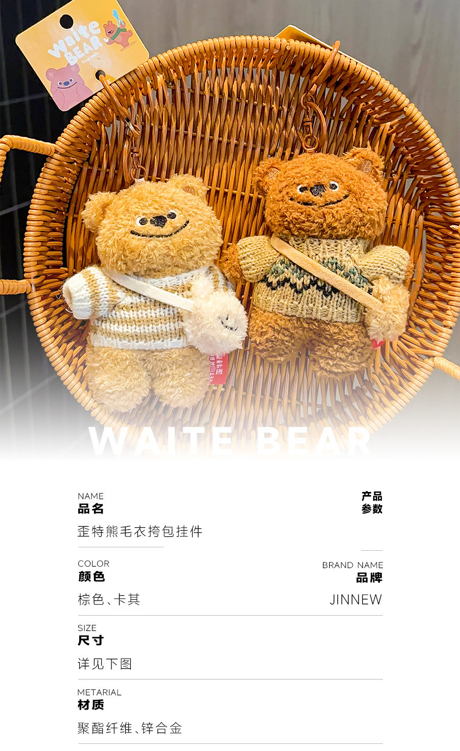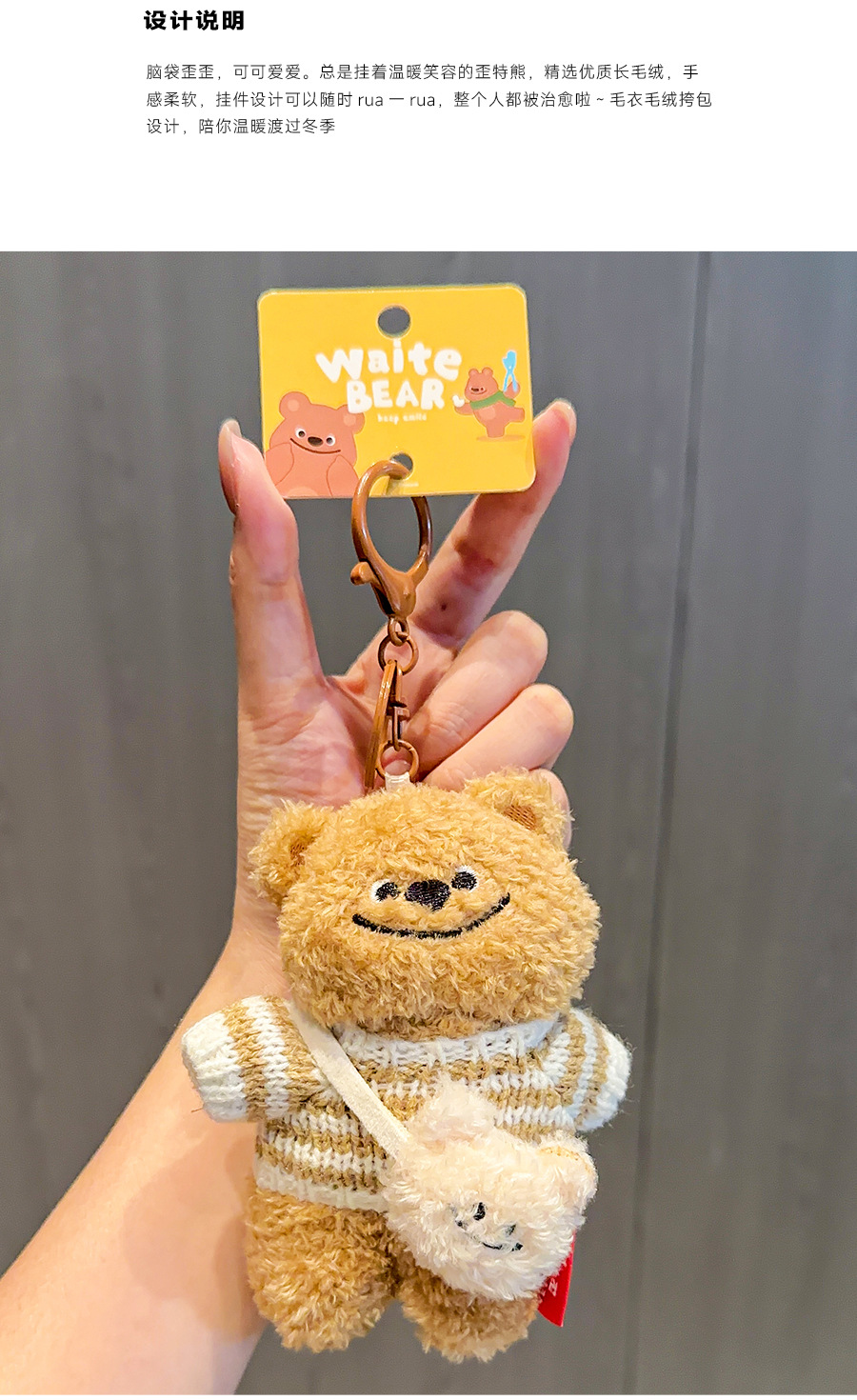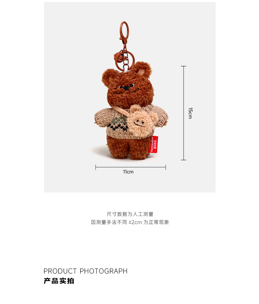 正版歪特熊毛衣挎包挂件毛绒公仔钥匙扣 小众少女心小熊玩偶包挂