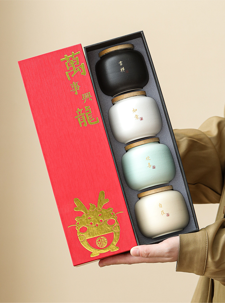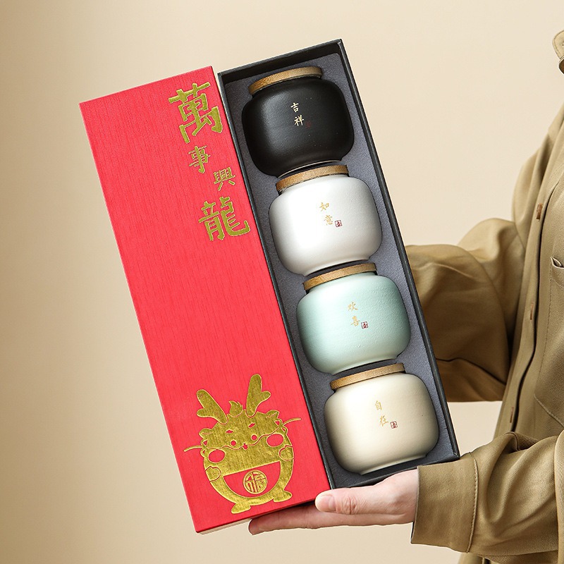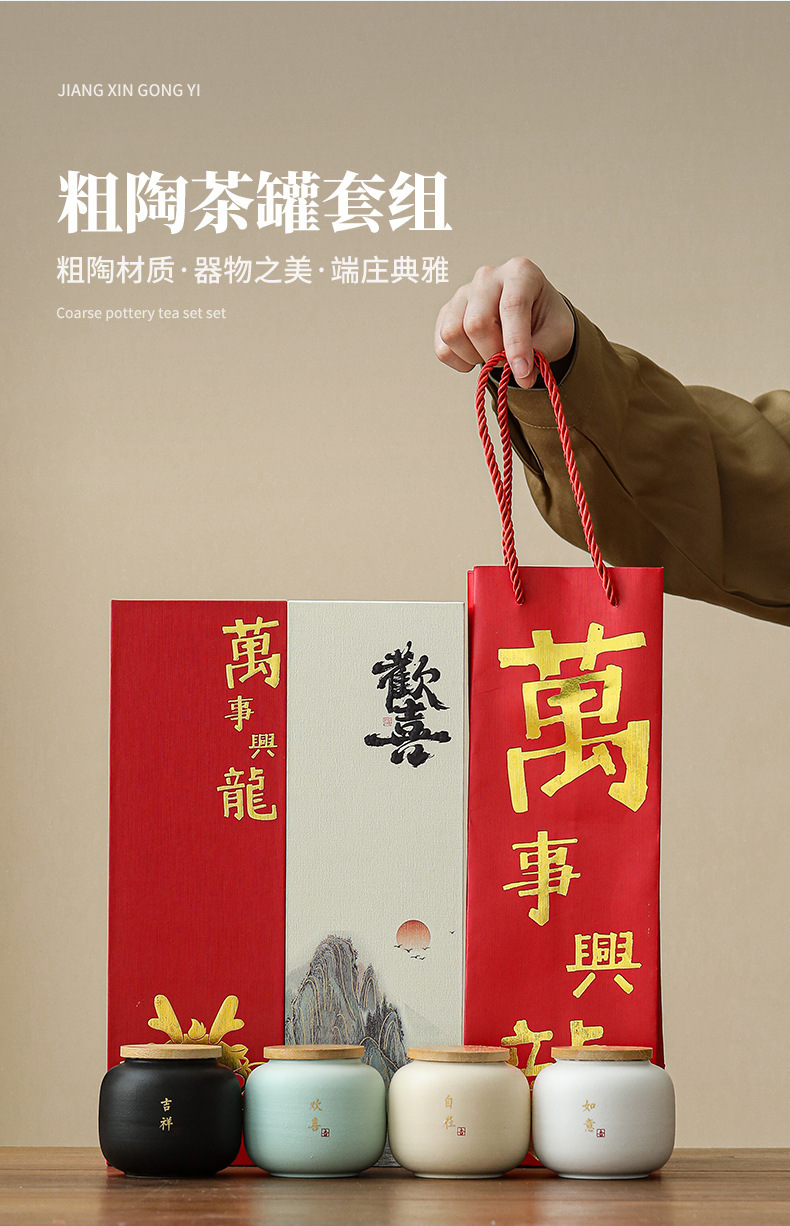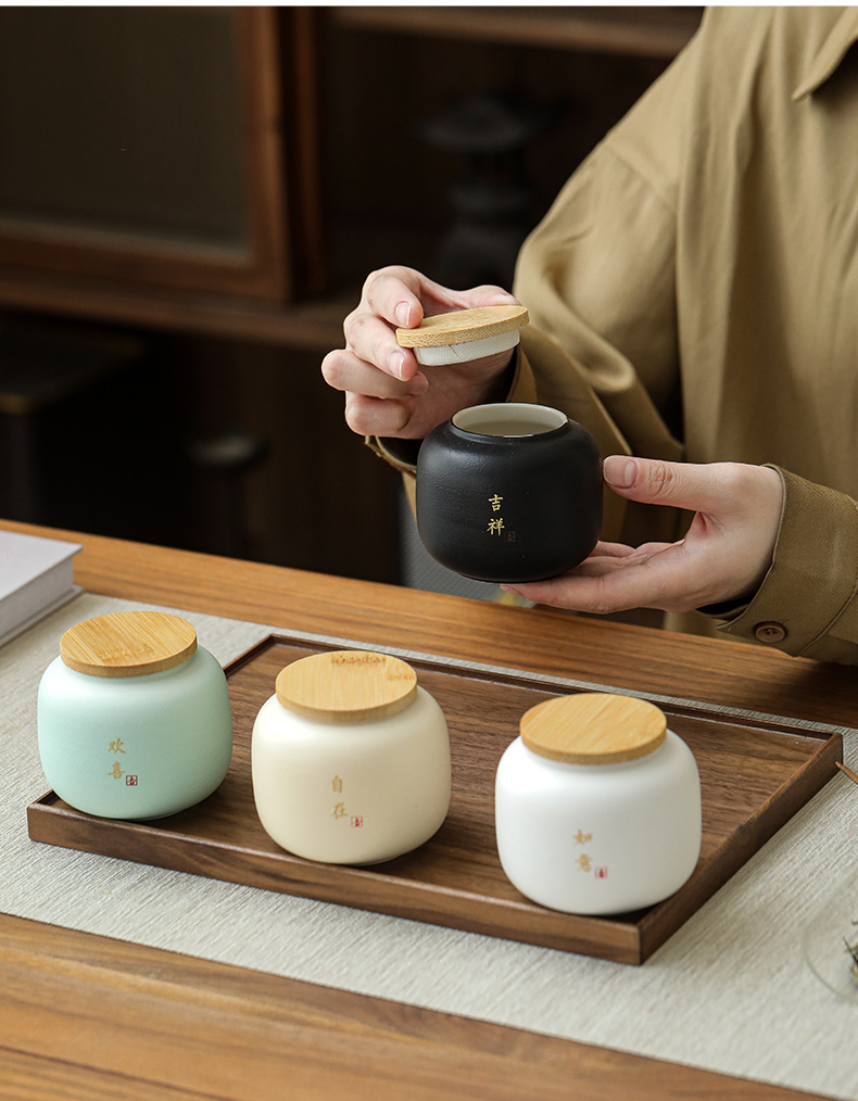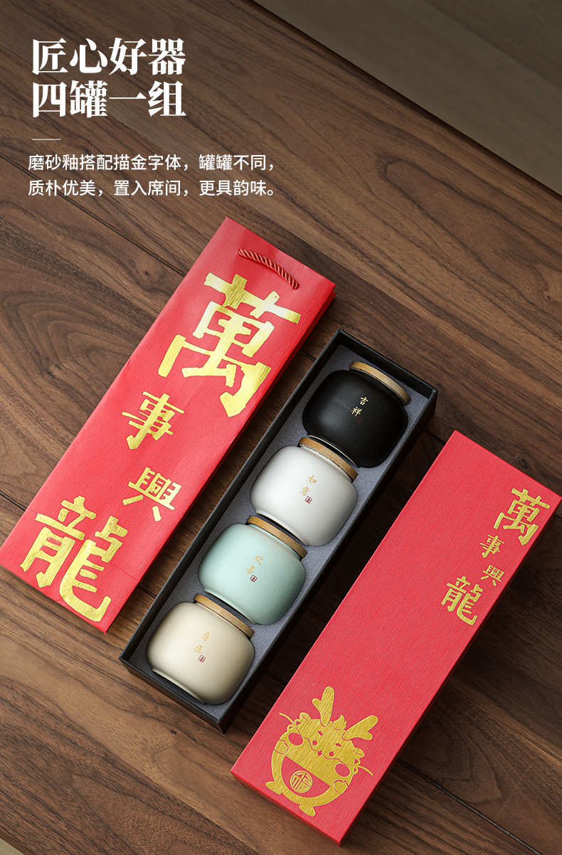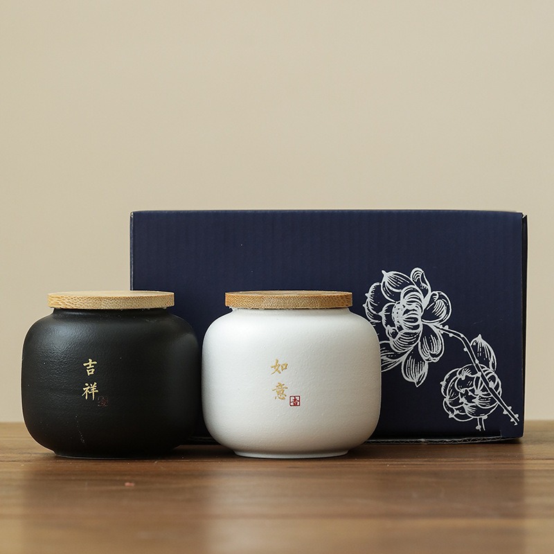 中式陶瓷茶叶罐旅行便携密封罐书法小号随身创意茶叶包装商务礼盒