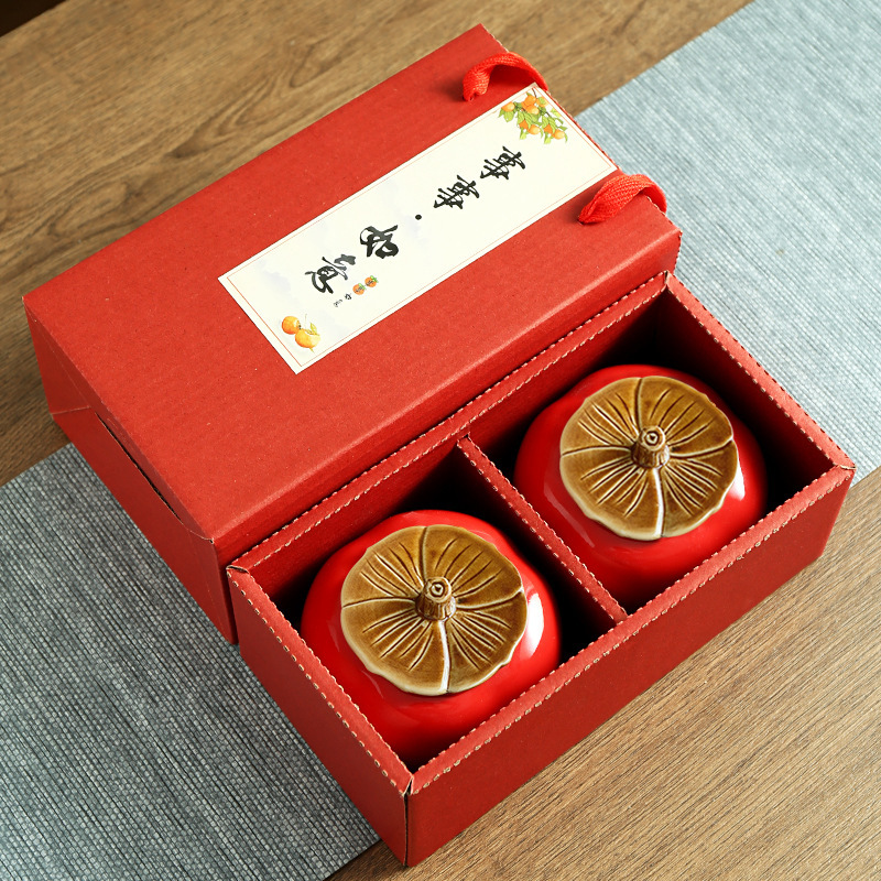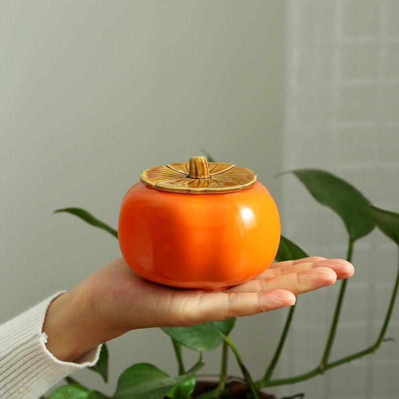 柿子陶瓷茶叶罐事事如意密封罐婚庆喜糖罐礼盒活动伴手礼品定 制
