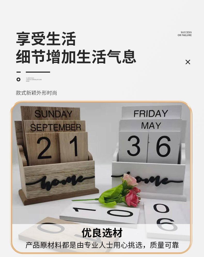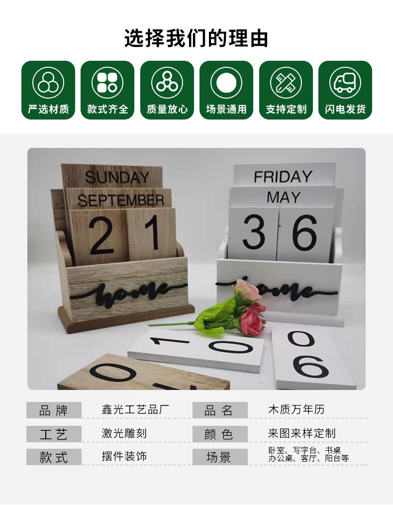 跨境专供 木质 日历万年历倒计时牌北欧风格家居装饰摆件工艺礼品