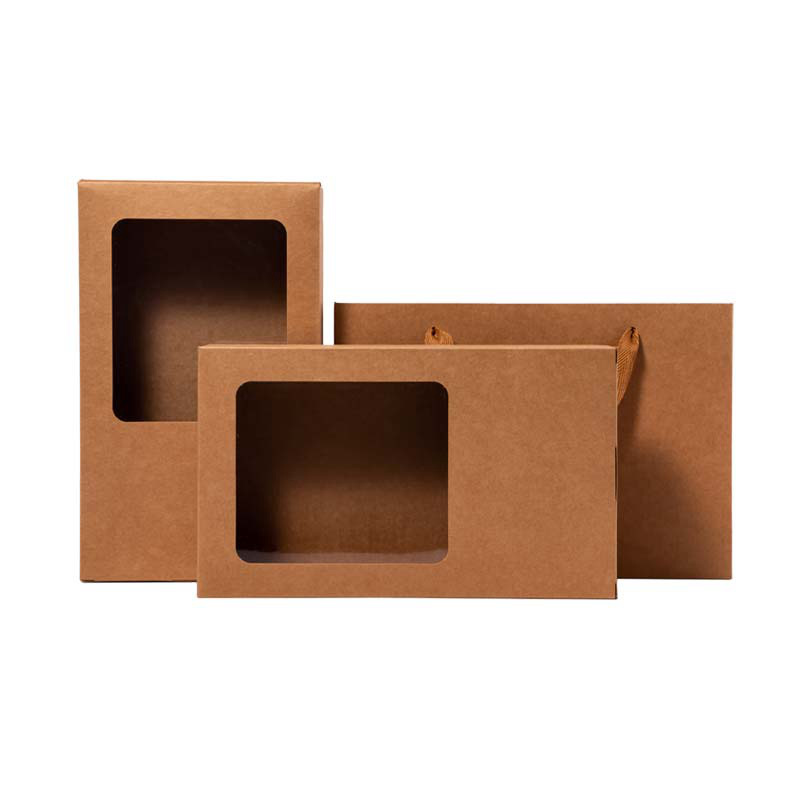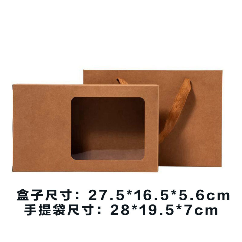 牛皮纸PVC茶叶包装盒礼盒空盒子手提袋半斤一斤镂空开窗简易袋子