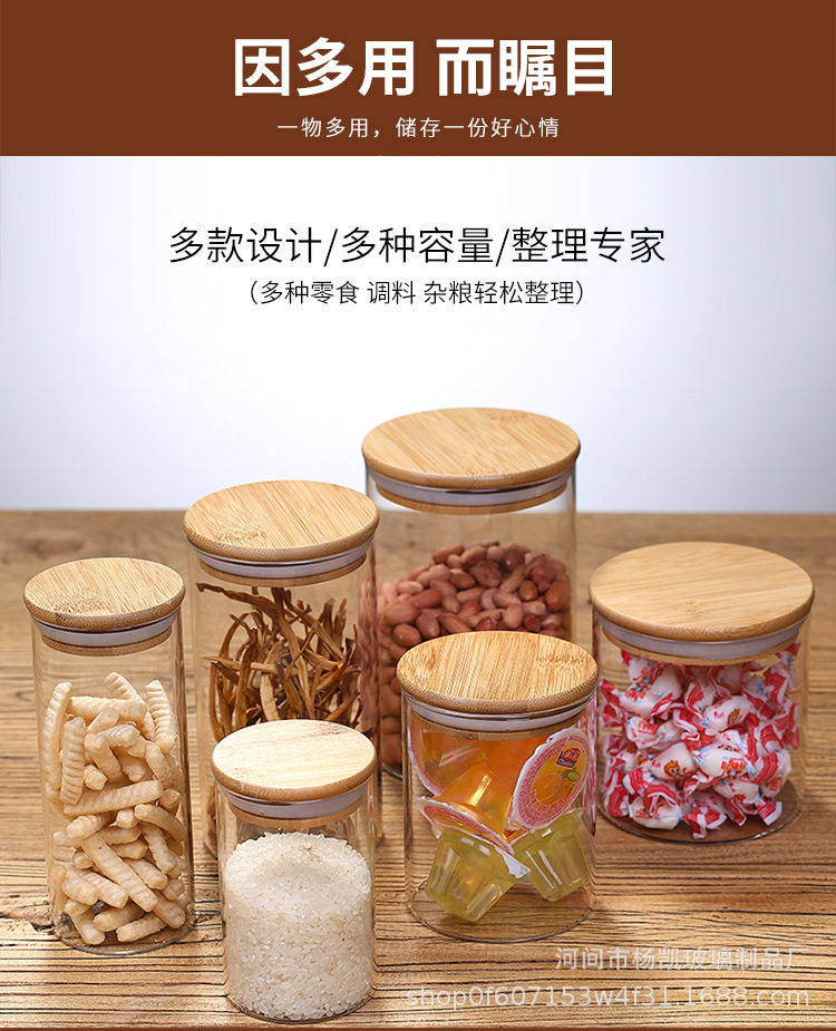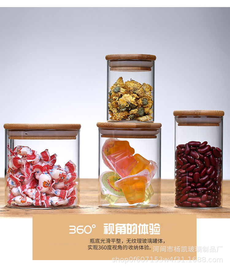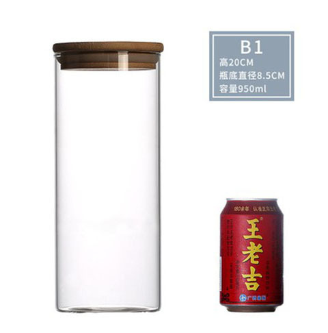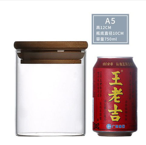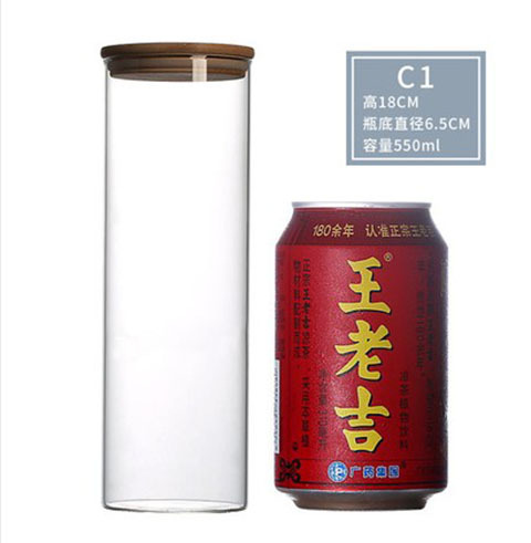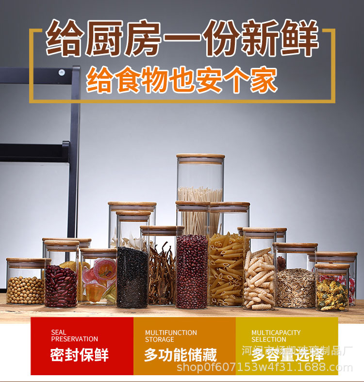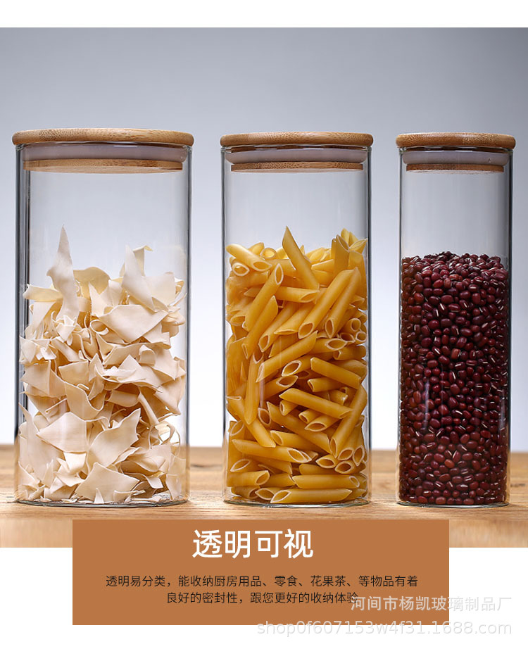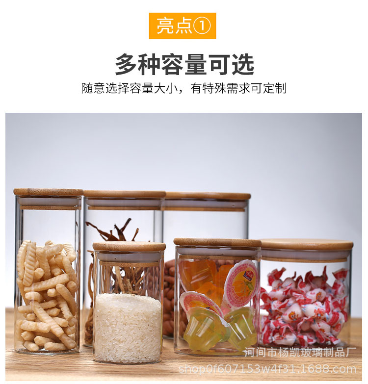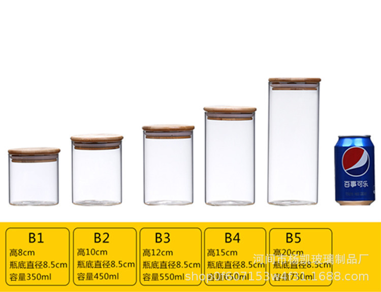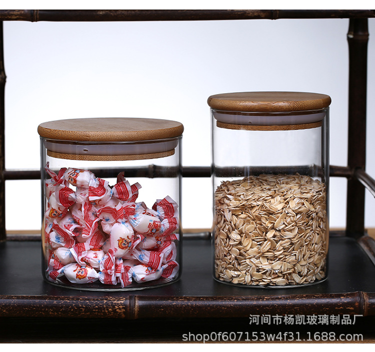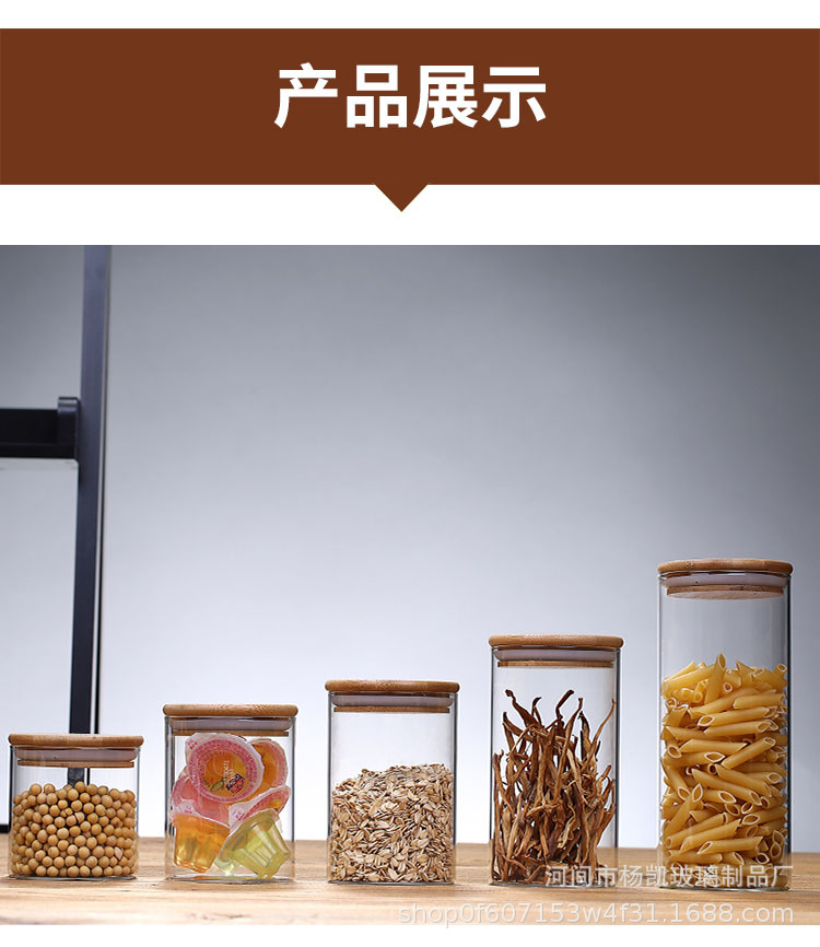 厂家批发直身玻璃竹木盖花茶茶叶罐 家用储物瓶 厨房杂粮收纳瓶